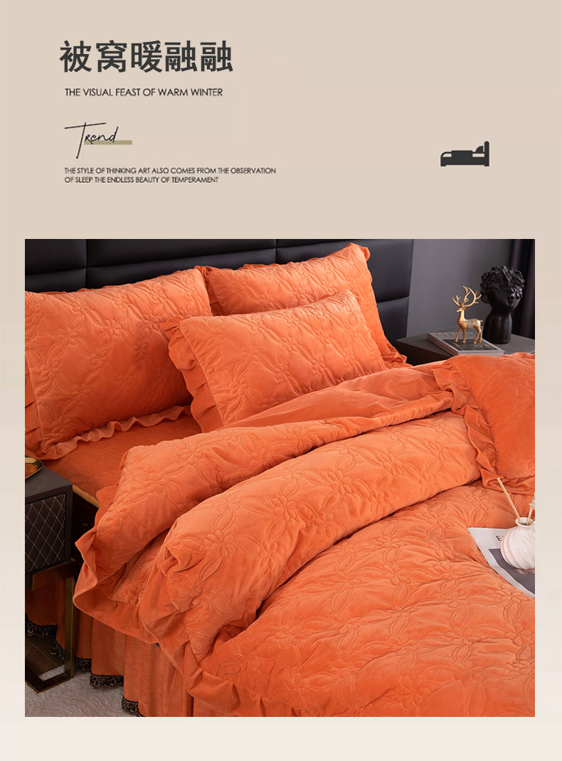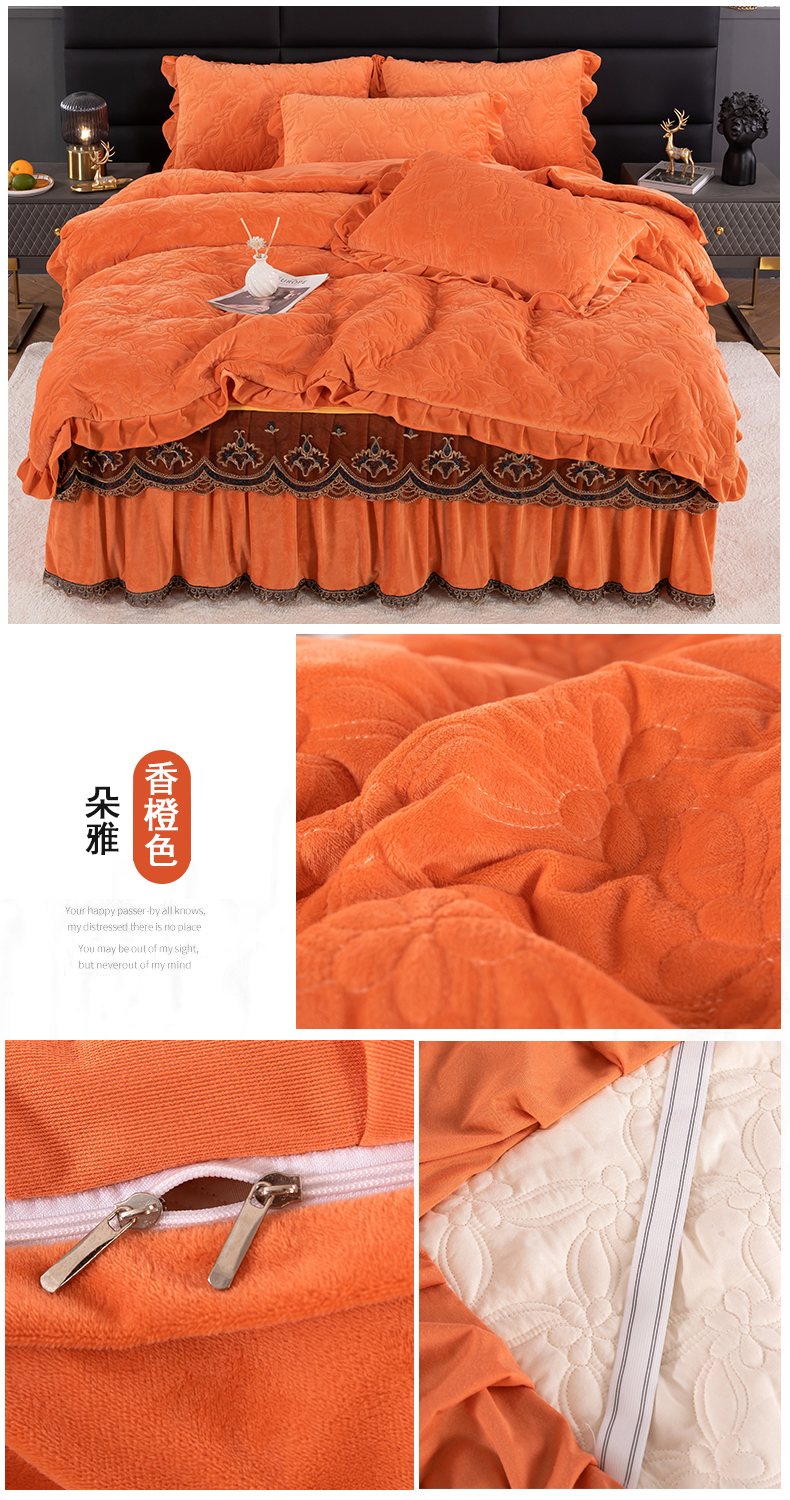 商品名称:(总)木兰花 2023新款宝宝绒婴儿绒纯色保暖加厚牛奶绒蕾丝刺绣夹棉床裙款四件套