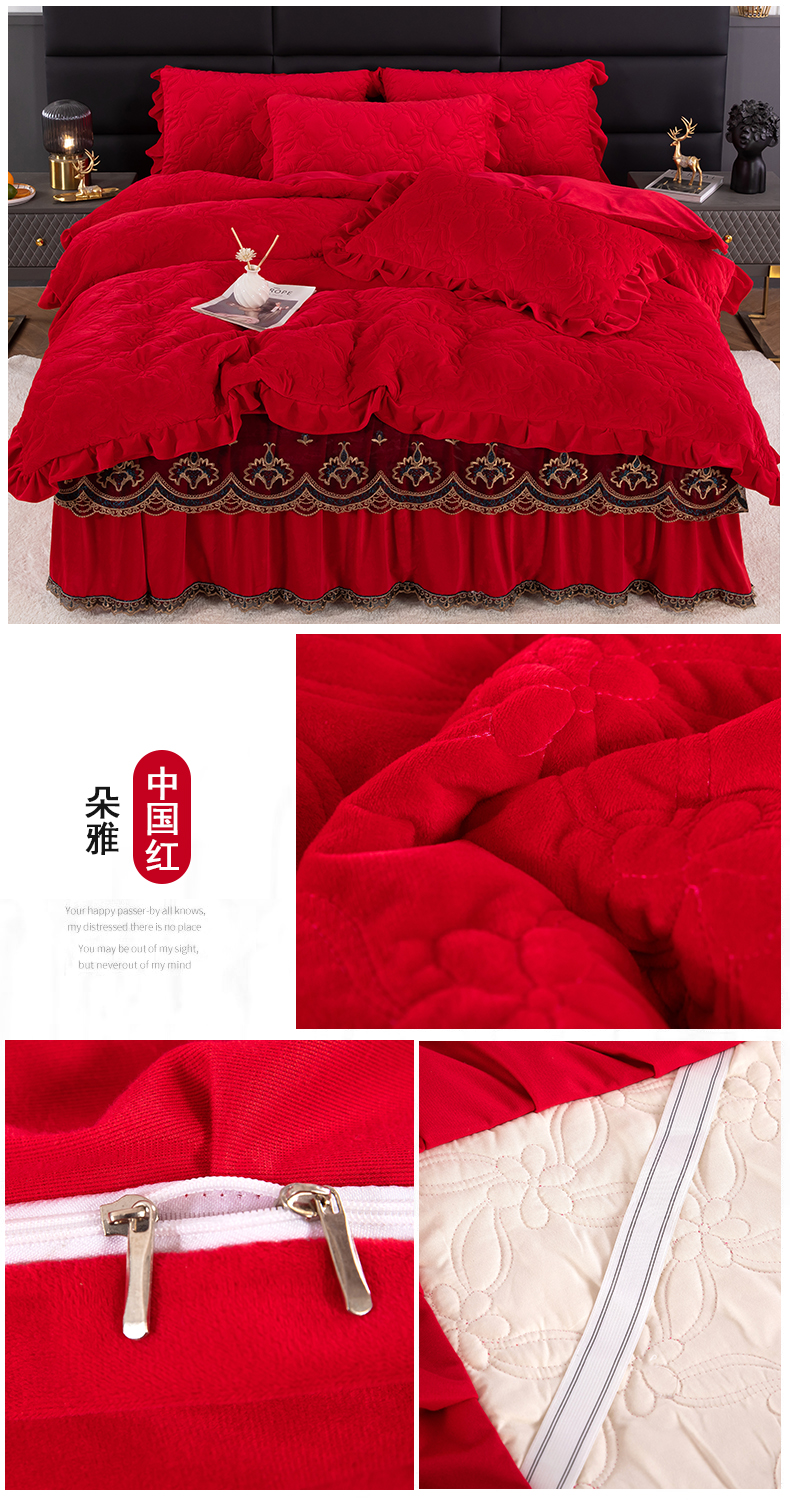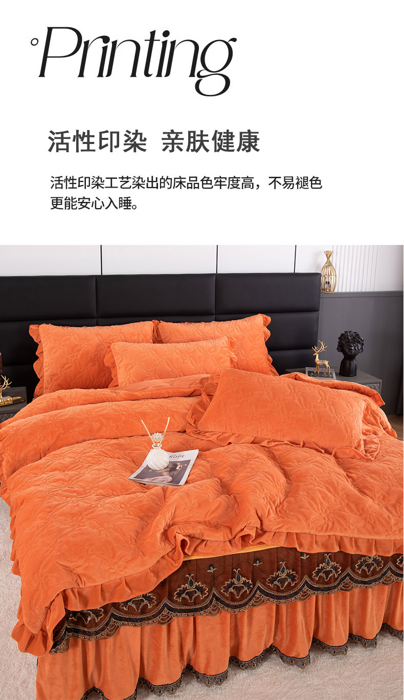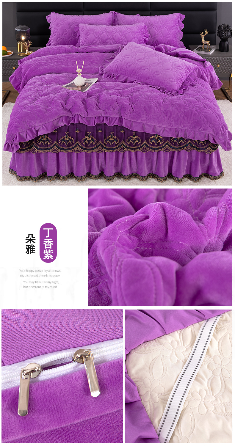 (总)木兰花 2023新款宝宝绒婴儿绒纯色保暖加厚牛奶绒蕾丝刺绣夹棉床裙款四件套