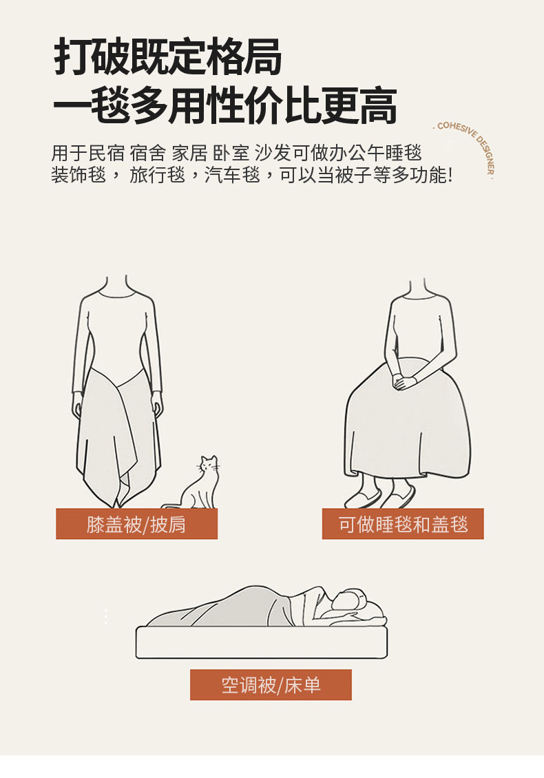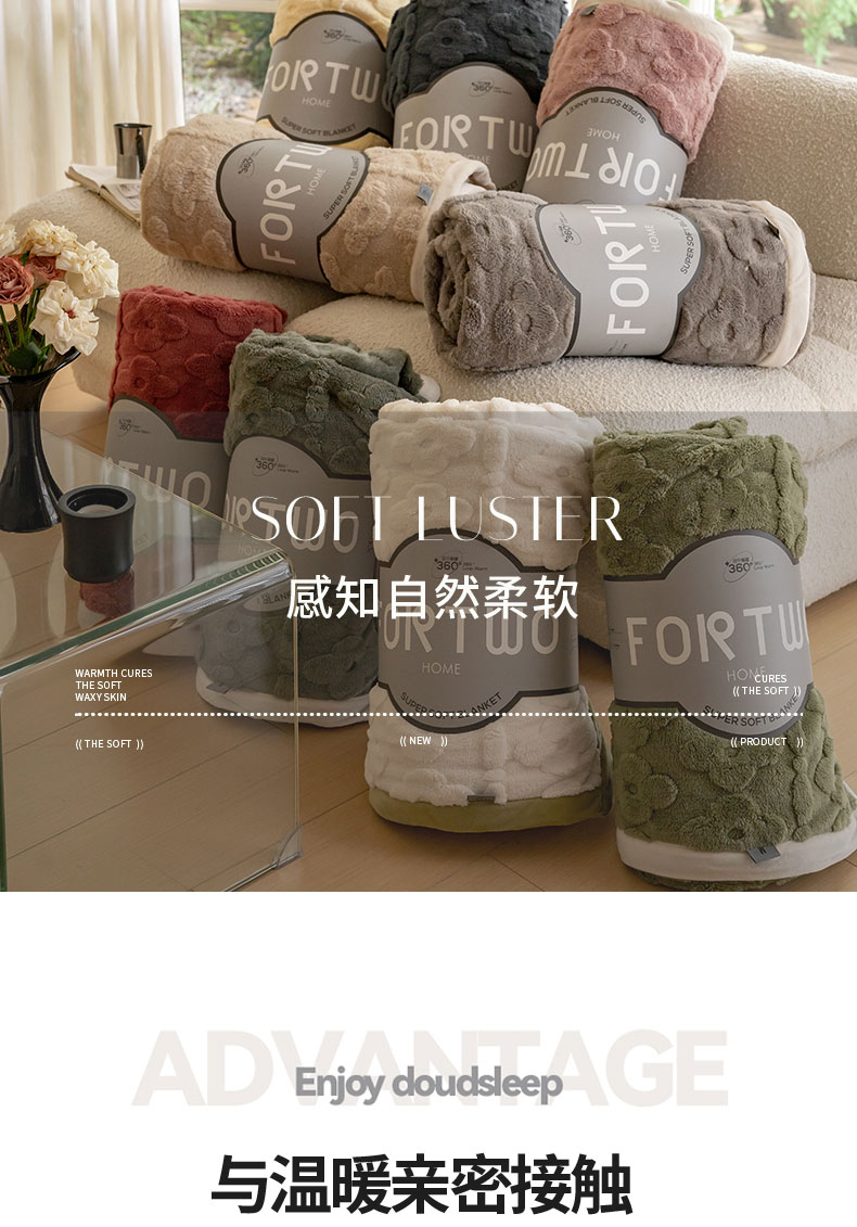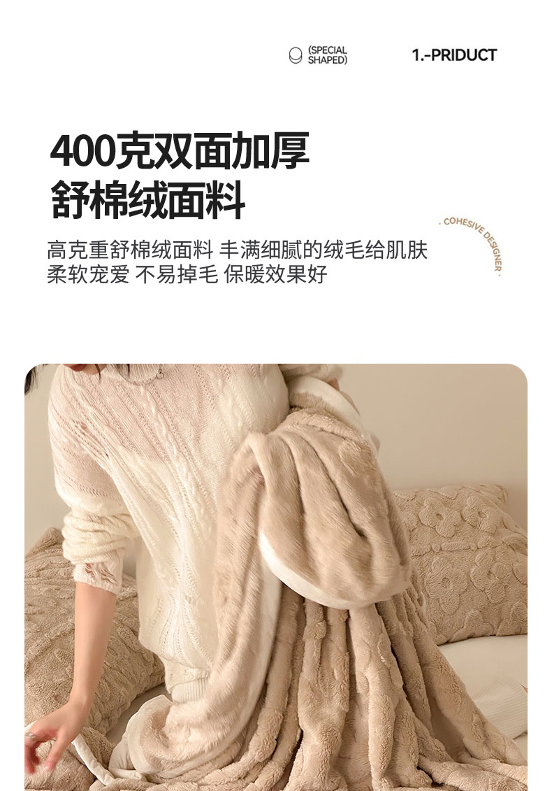 商品名称:2023 FORTWO家纺原创设计(FOR TWO家纺) 400克双面加厚舒棉绒毛毯 蜜果-奶咖