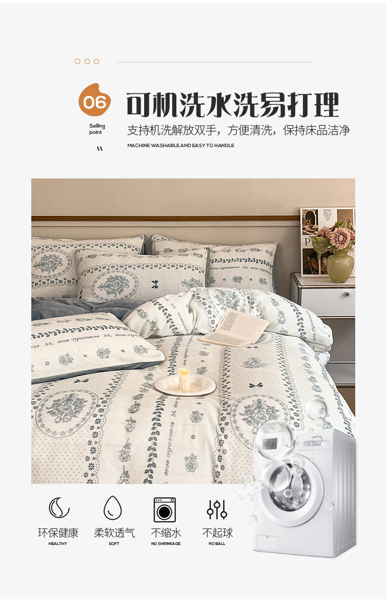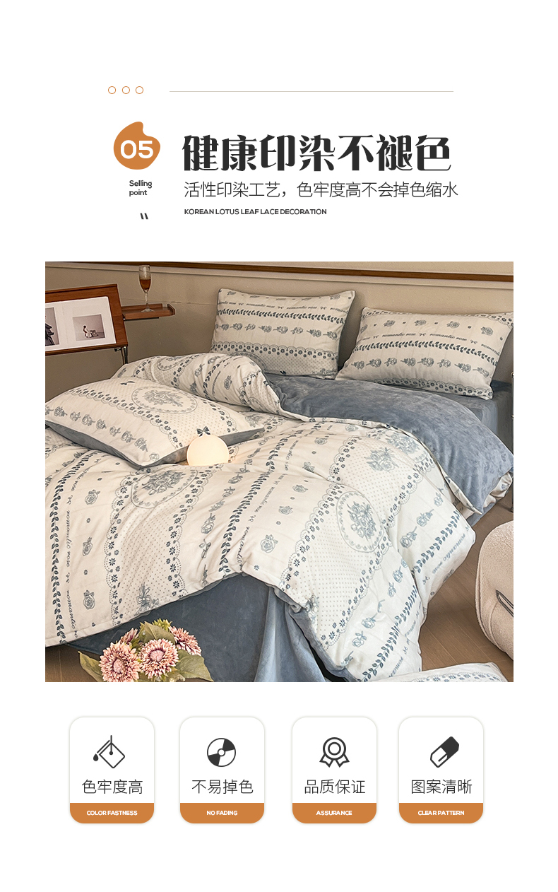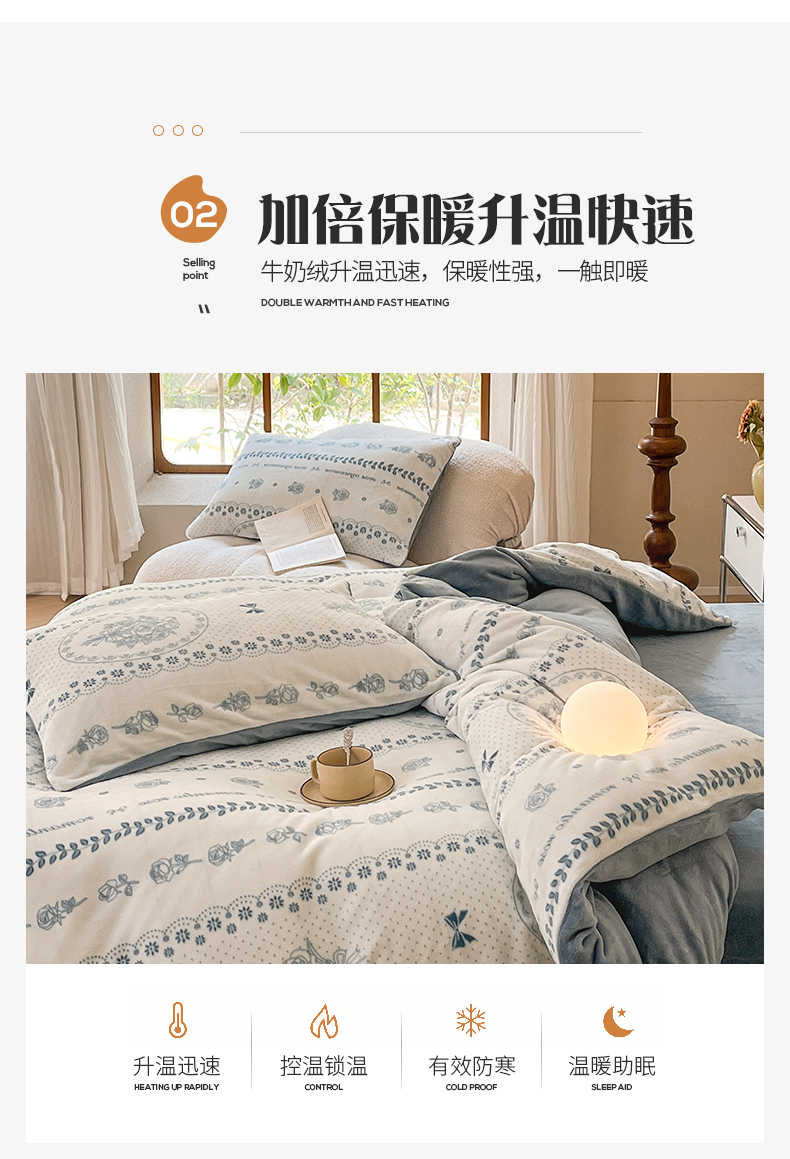 桃子家居 2023新款ins法式复古赫本碎花山茶花卉加厚牛奶绒系列四件套 绒-罗曼