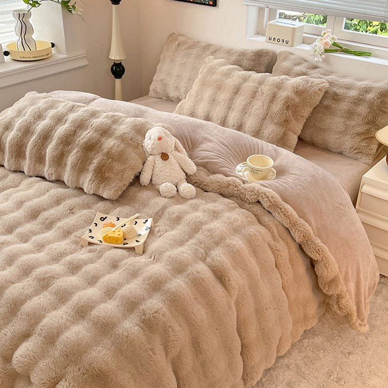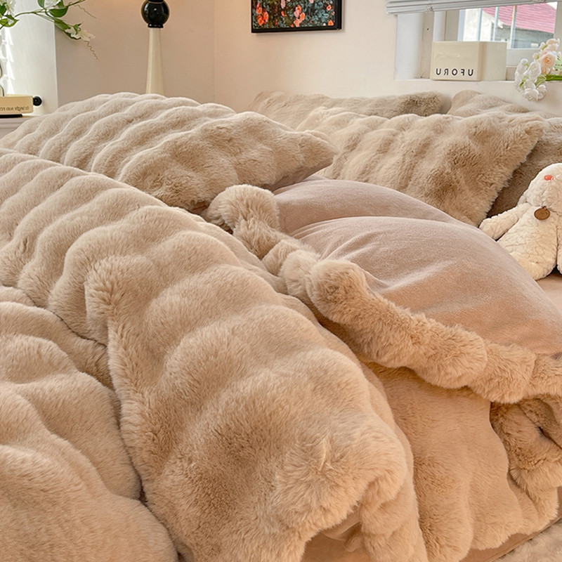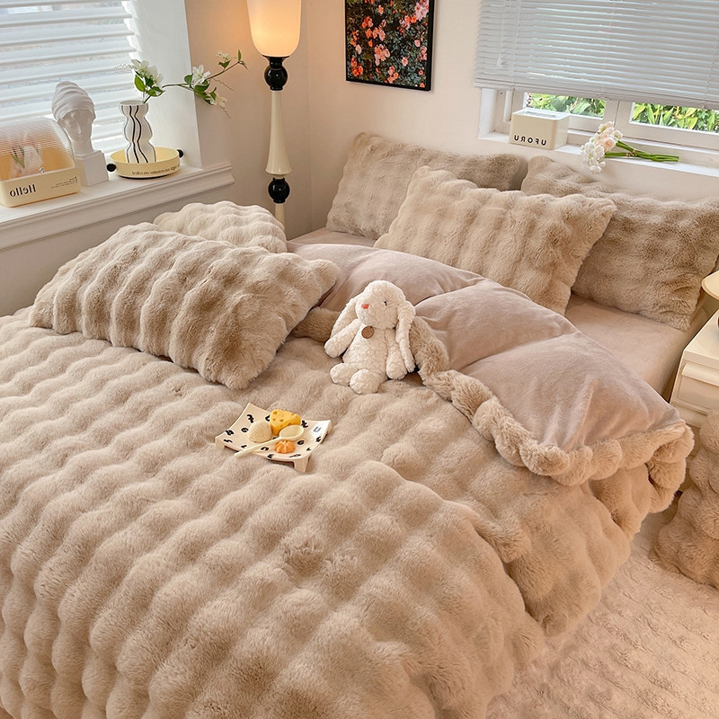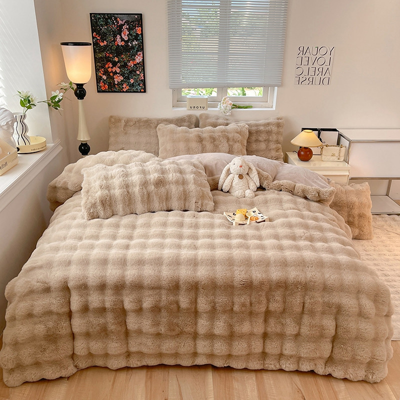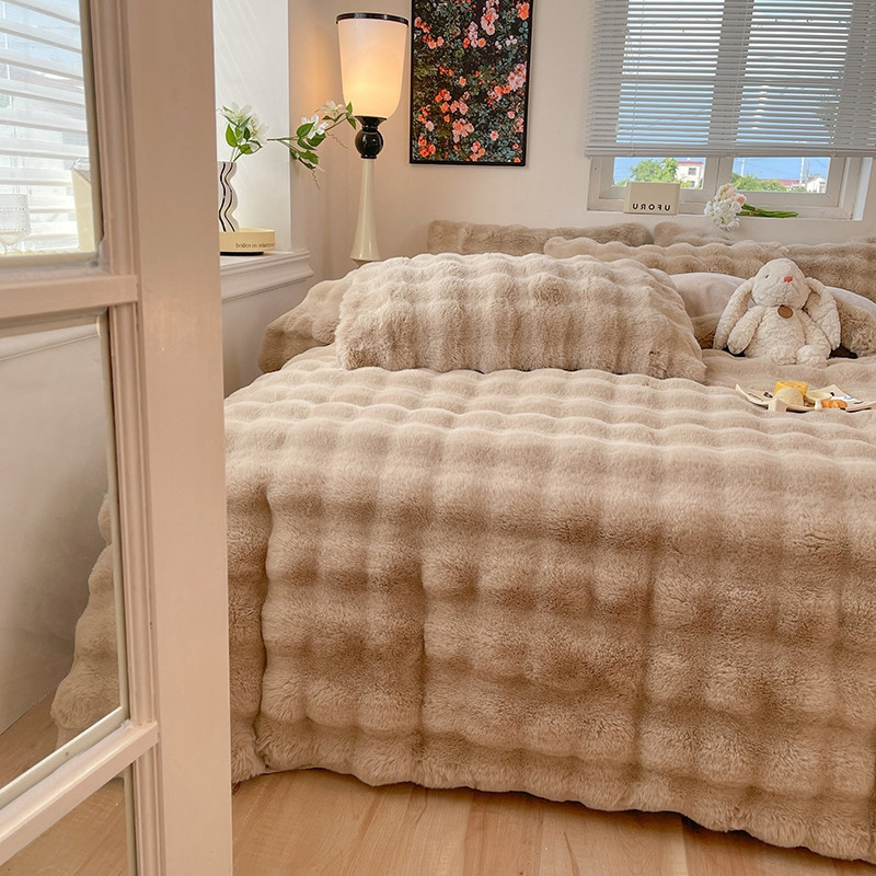 商品名称:满座2025新款580克托卡斯仿皮草大泡泡兔兔绒牛奶绒四件套 纯咖