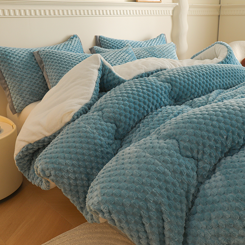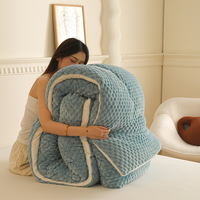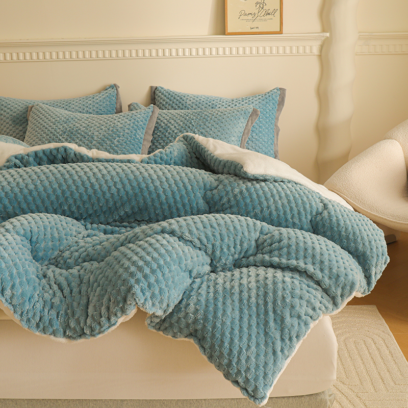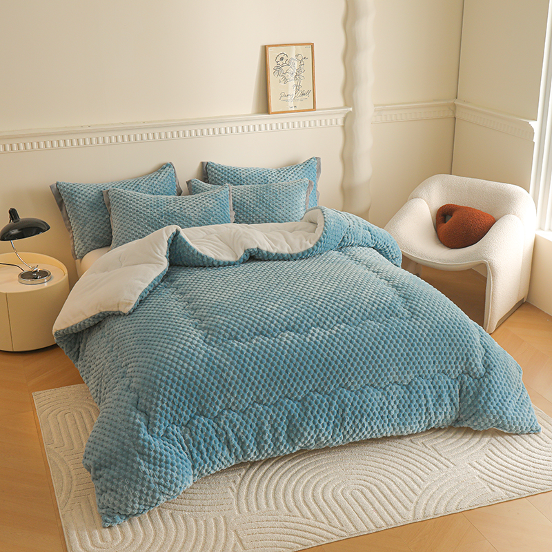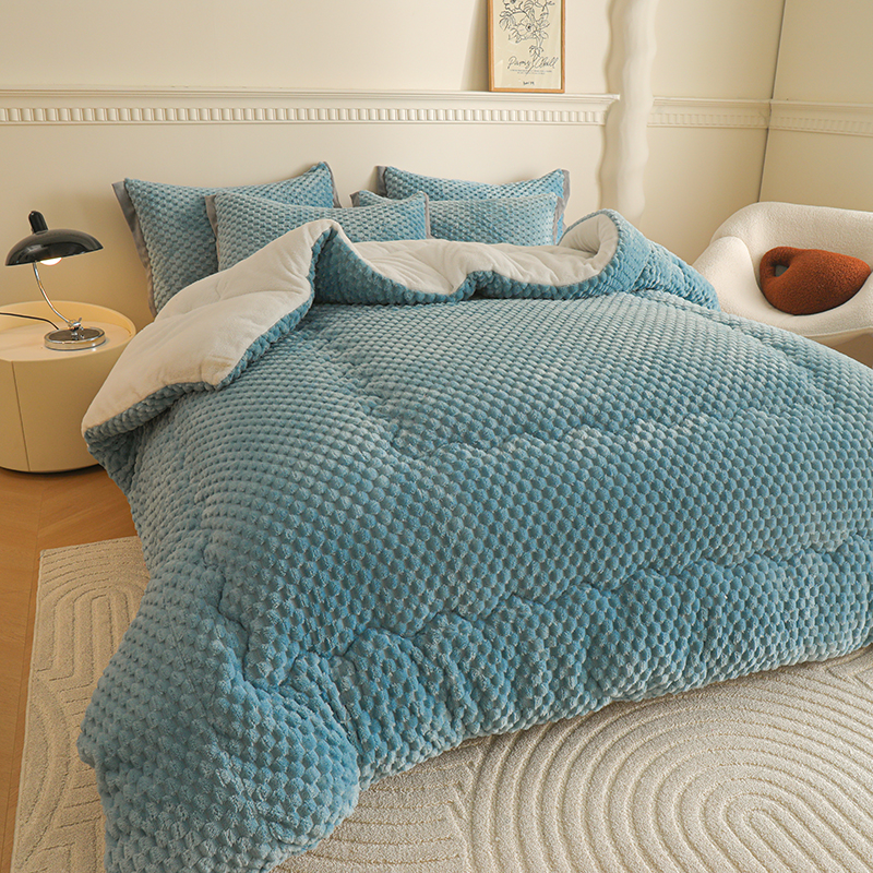 • 91家纺网 家纺一手货源 找家纺 雅蔓依家纺 2025新款金龟绒龟背绒羊羔绒冬被被子被芯 唯美蓝灰