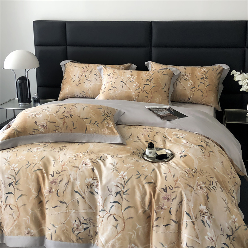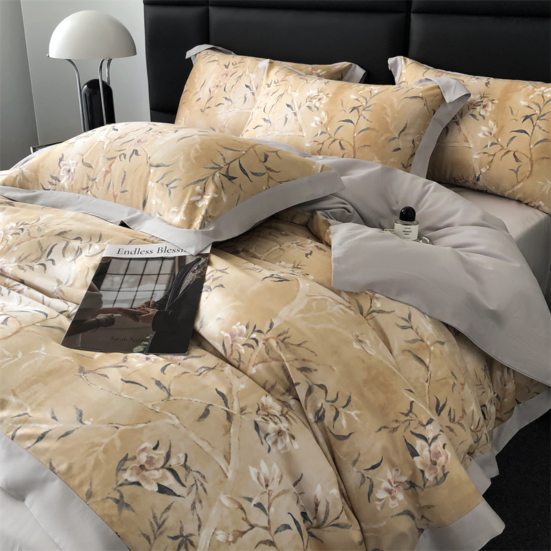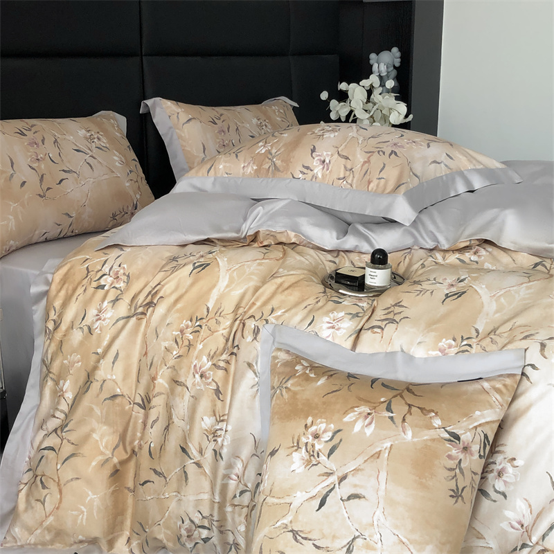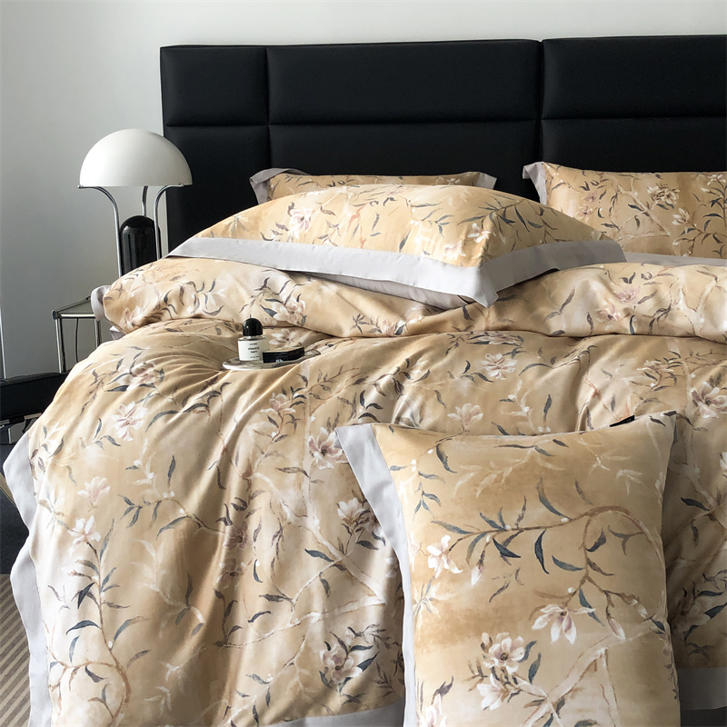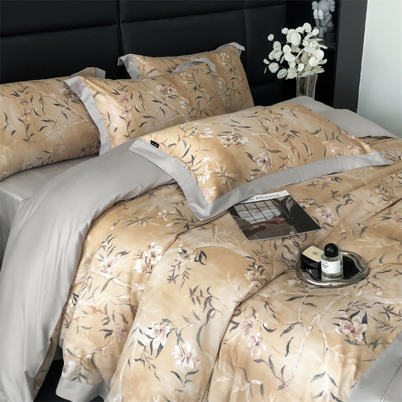 (总)时亿 2023新款100支长绒棉四件套苍兰之约,苍兰之约-橙,苍兰之约-绿