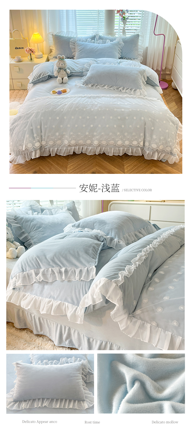 商品名称:唐人居 2025新款安妮系列水晶绒四件套 安妮-浅蓝