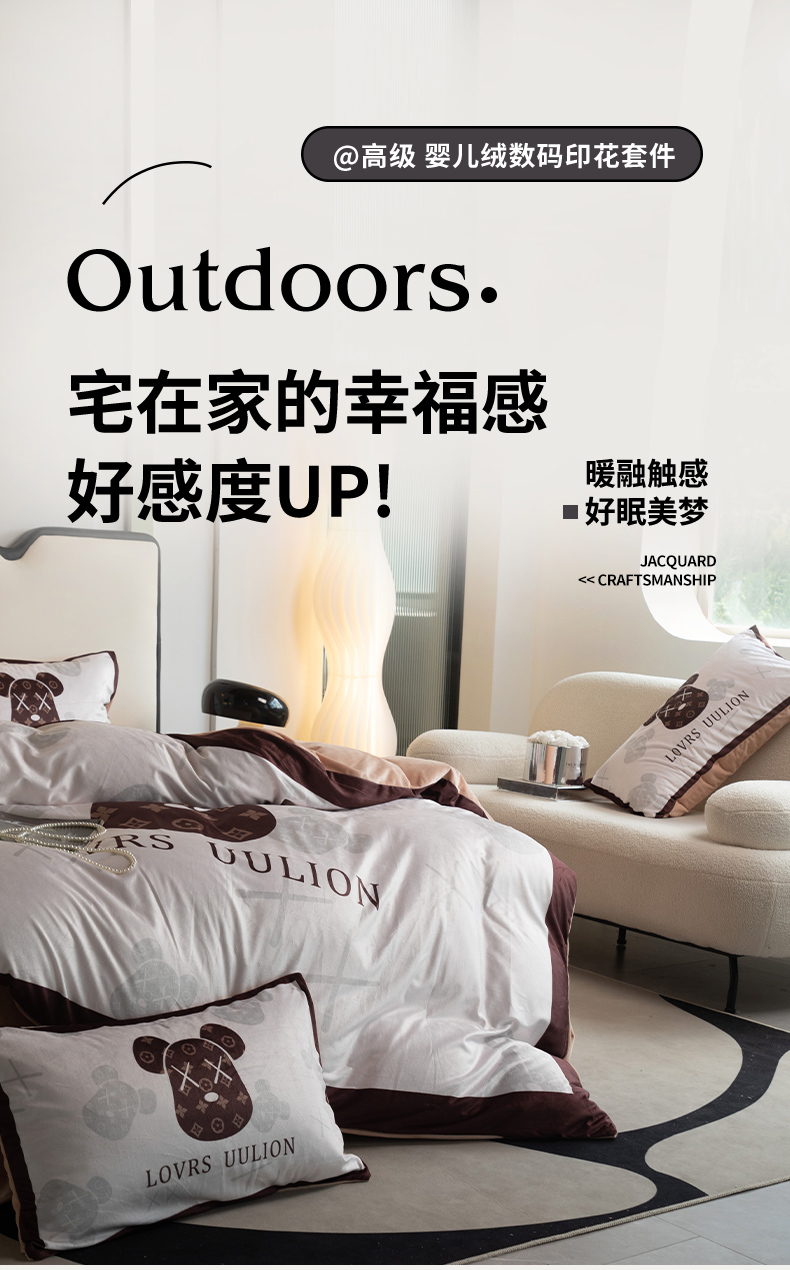 商品名称:摩卡 2024新款秋冬新品网红款婴儿绒毛四件套 熊头咖
