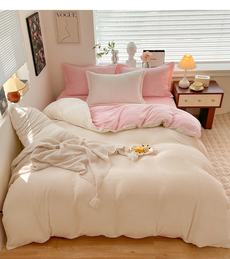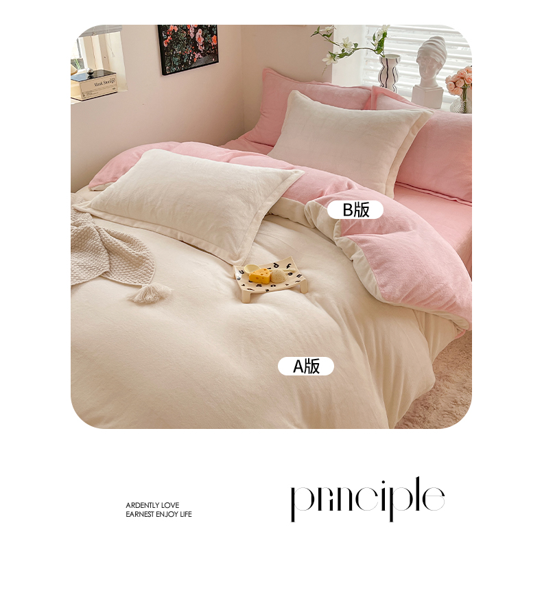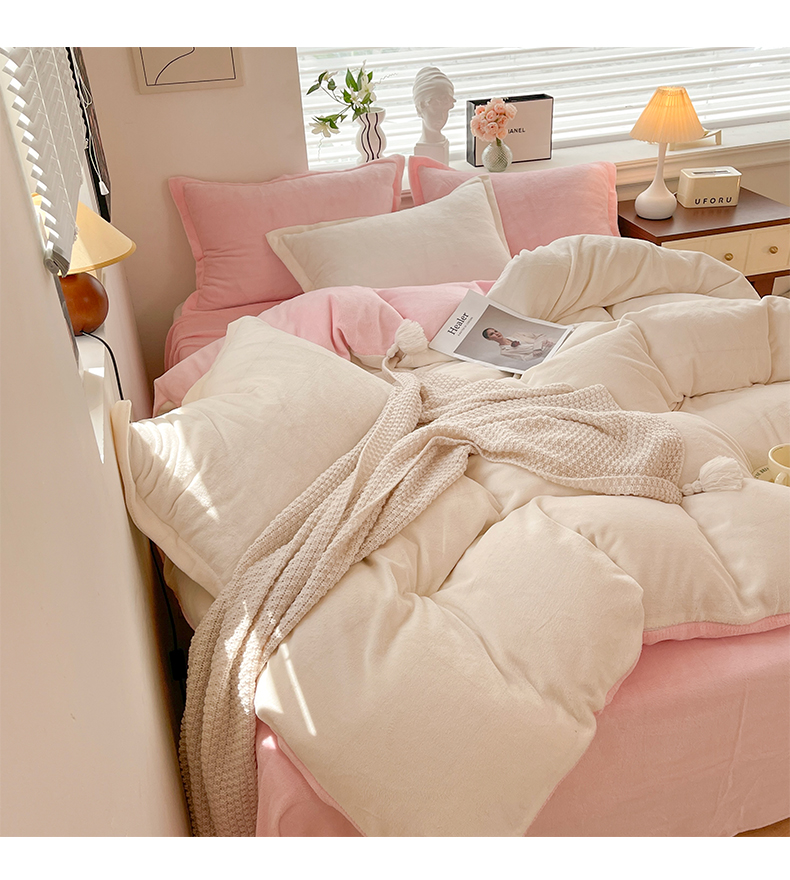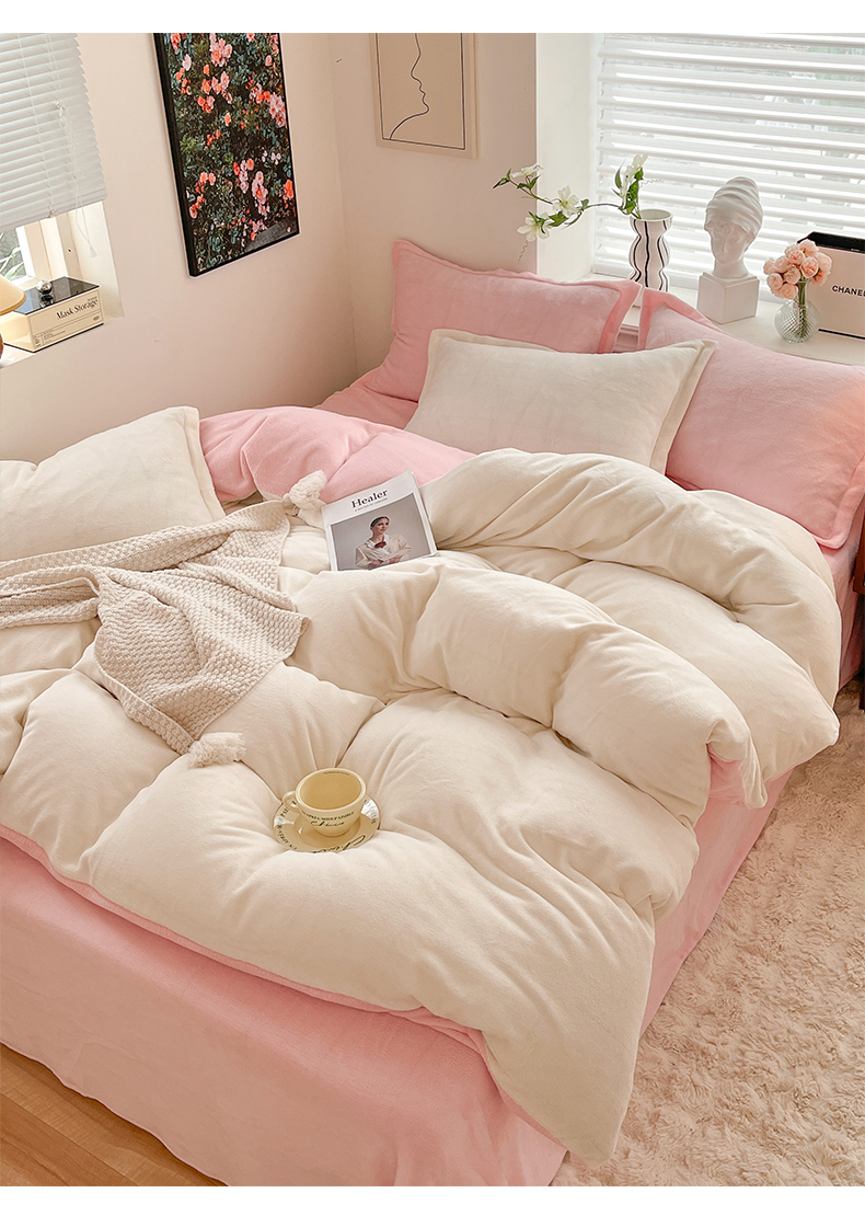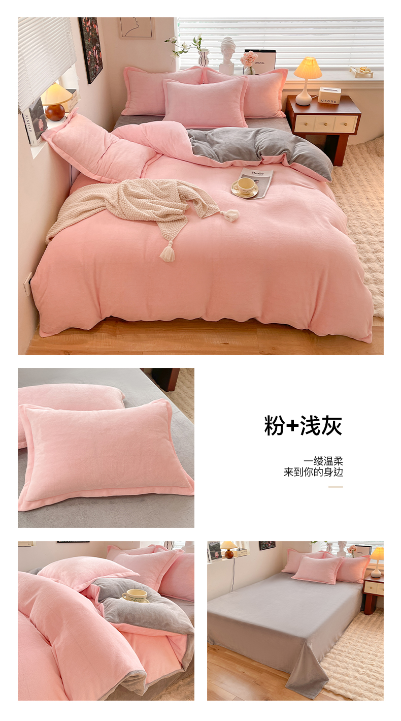 (总)逸尚阁 2025新款羊羔绒牛奶绒双拼四件套,贵族咖,淡黄+粉,雅致灰,天空蓝,奶油黄,桃子粉