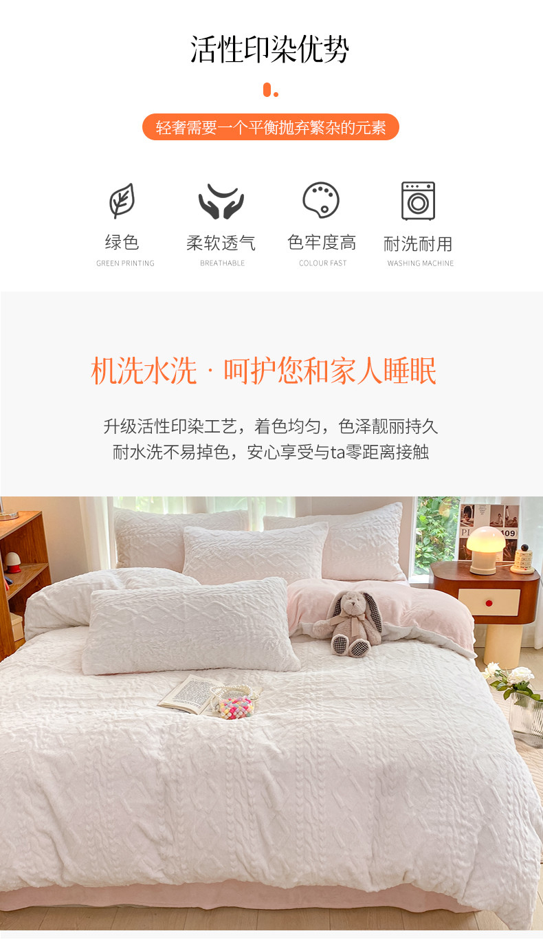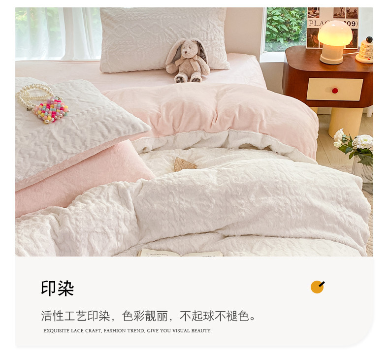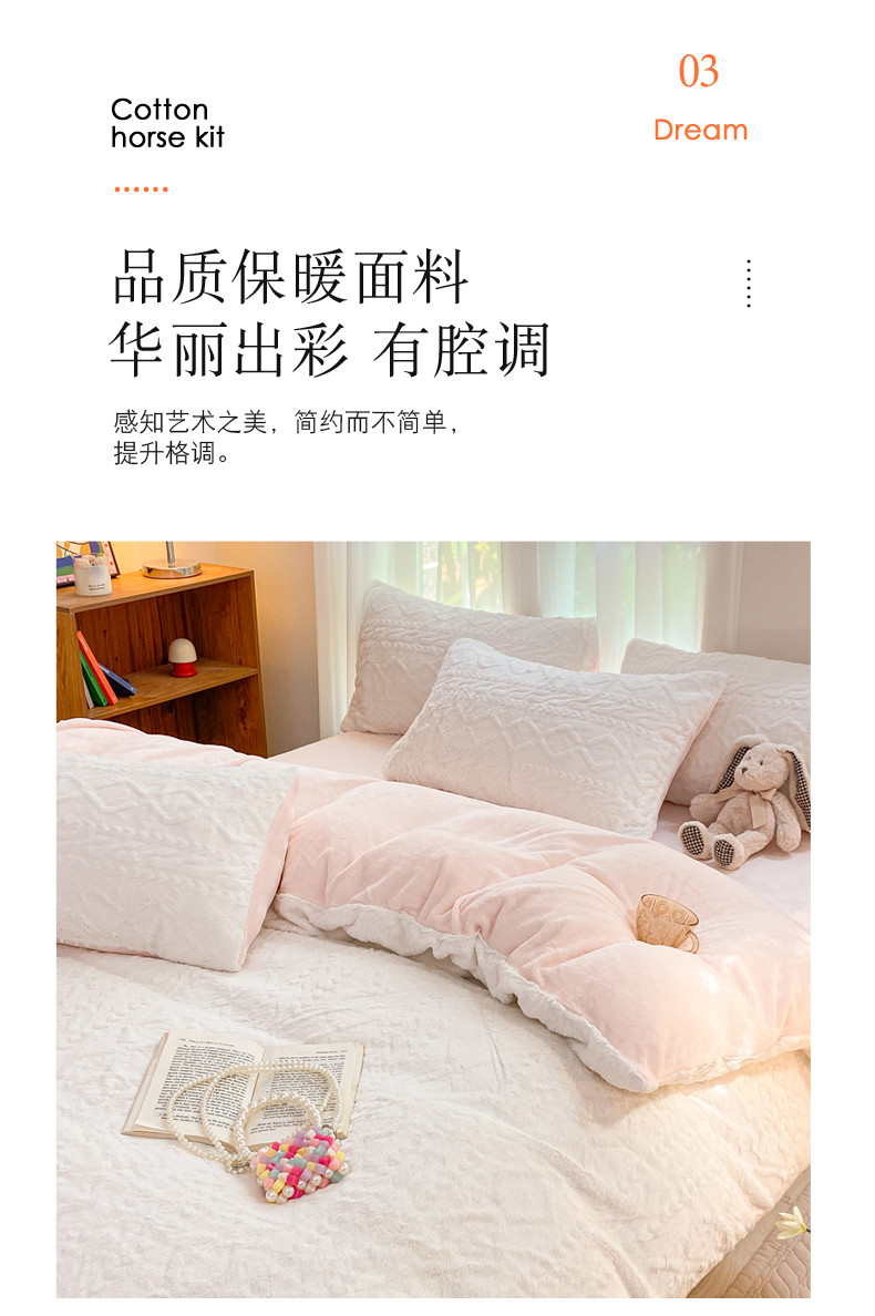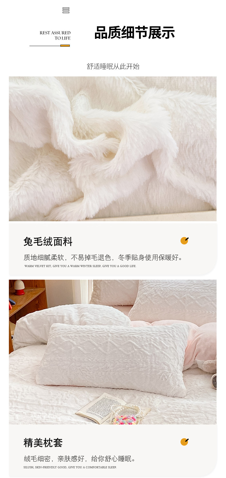 商品名称:金爱家 2023新款全消光牛奶绒A类纯色獭兔毛绒立体牛奶绒四件套 兔毛菱格粉