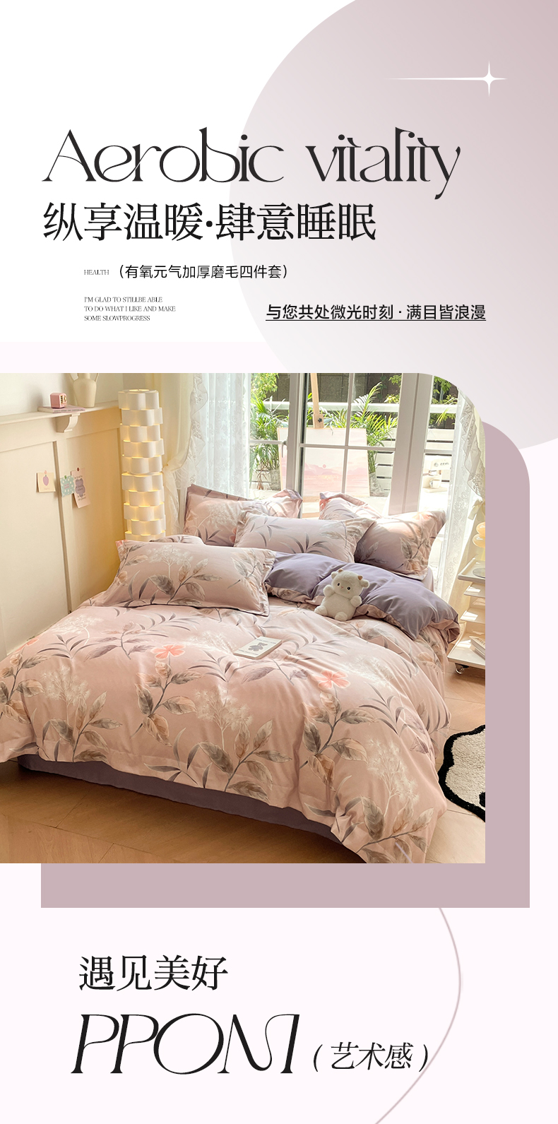 商品名称:古吉梦 2023新款A类有氧元气棉加厚磨毛四件套 彼岸花