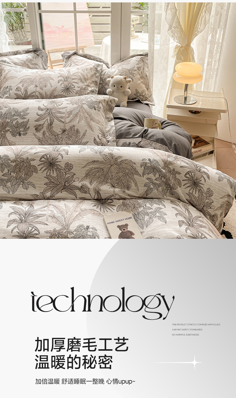 古吉梦 2023新款A类有氧元气棉加厚磨毛四件套 晚风
