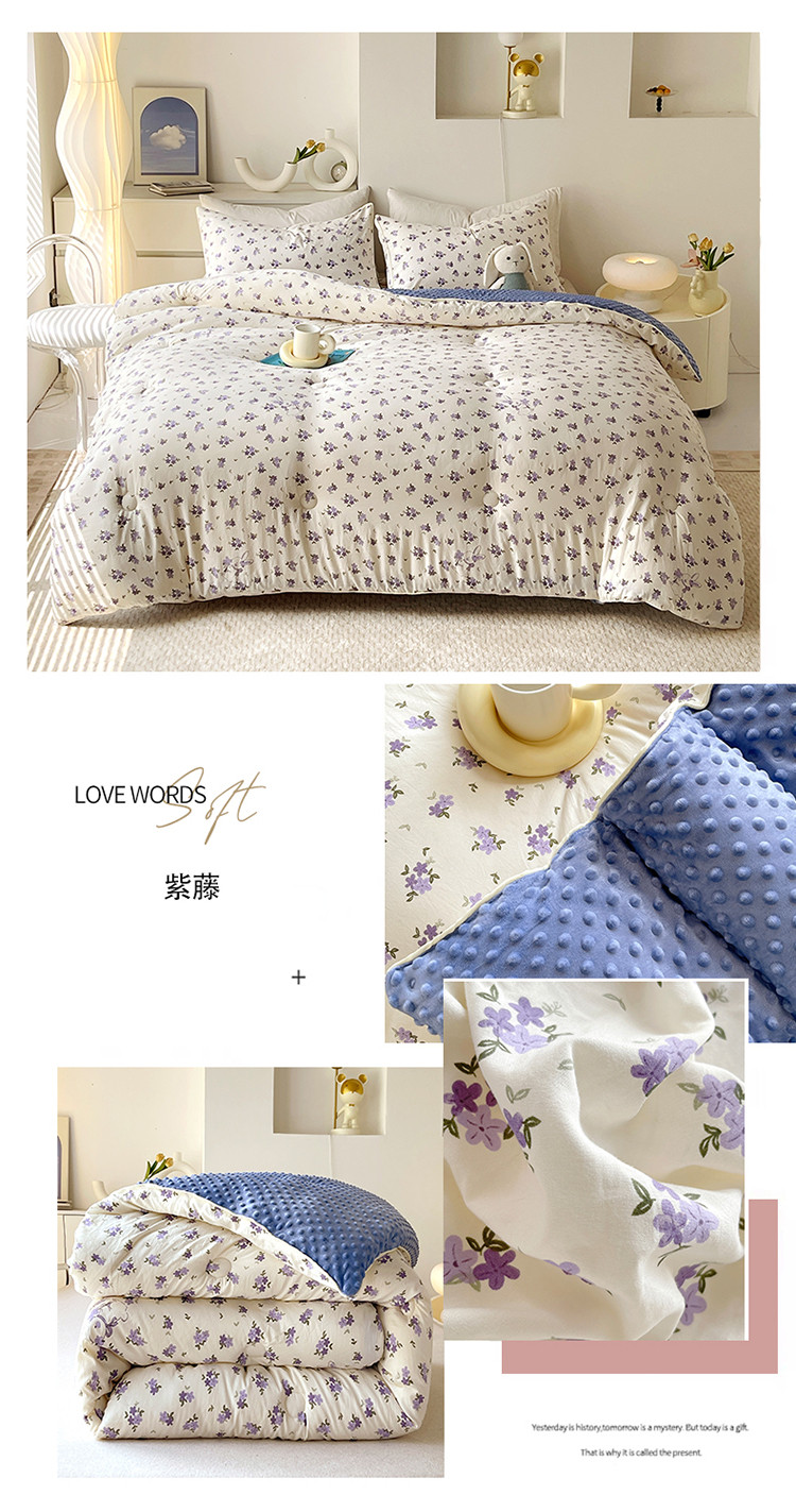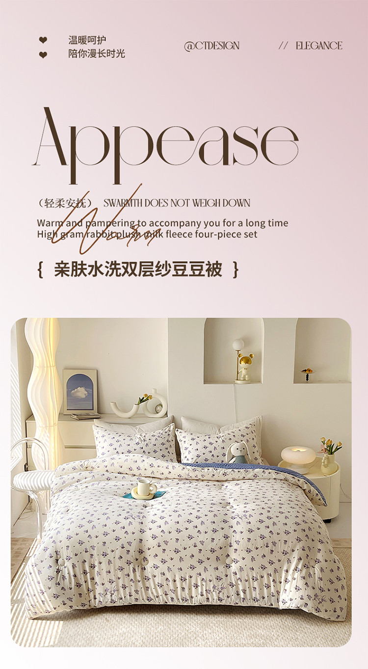 (总)网客家纺 2025新款高克重兔毛绒拼角印花四件套-繁花系列,枫叶,花开四季,金玉满棠,清郁紫薇,秋叶海棠,水墨花,一路生花