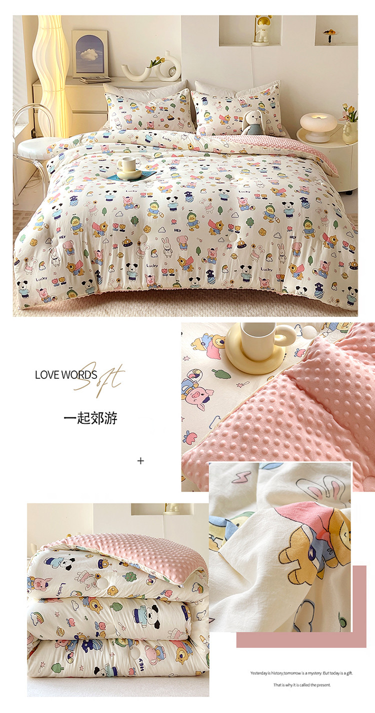 (总)网客 2024新款亲肤水洗双层纱豆豆被