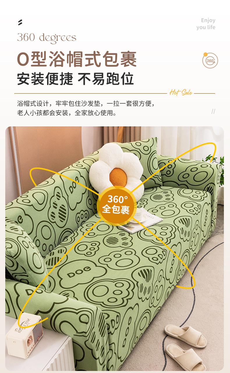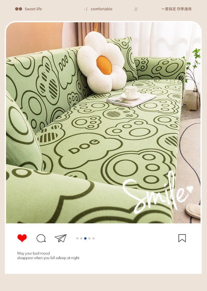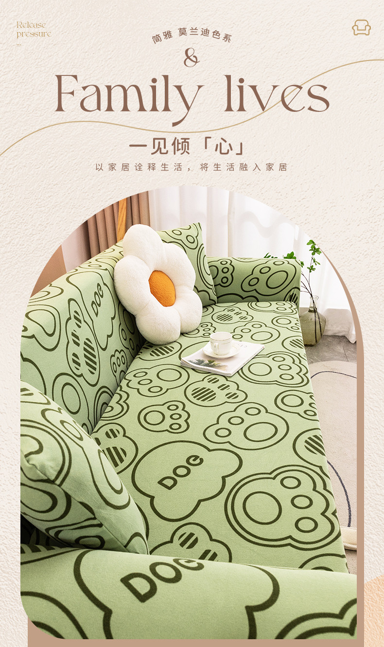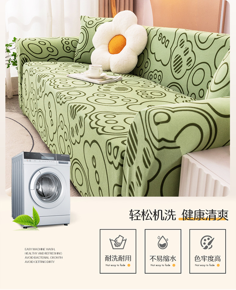 沐沐家纺 2026新款慕斯绒印花沙发套 慕斯绒-抹茶绿