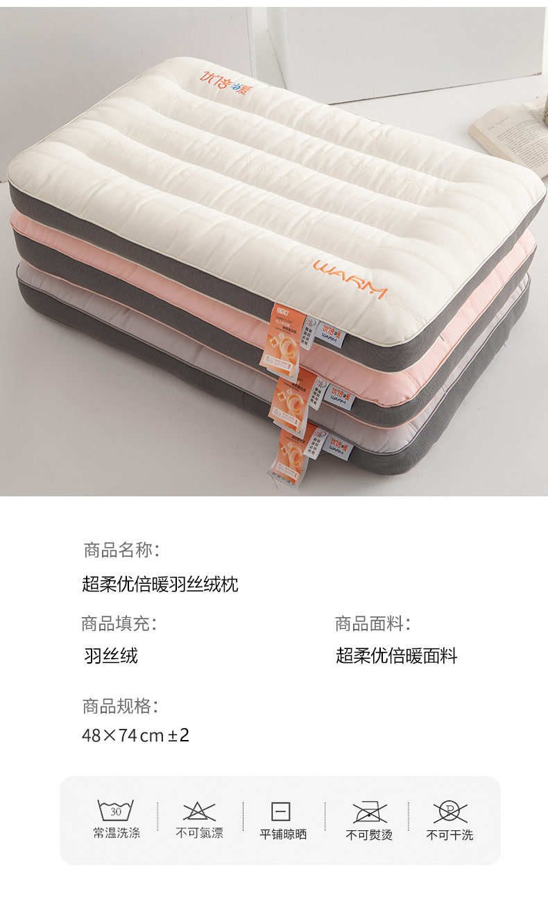 当前位置: 91家纺网 > 商品网购 > 枕头/枕芯/保健枕/颈椎枕 > 普通枕芯 > (总)仁宇枕业 2023年新款枕芯 优倍暖羽丝绒低枕头枕芯48*74