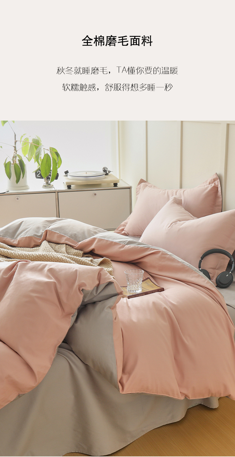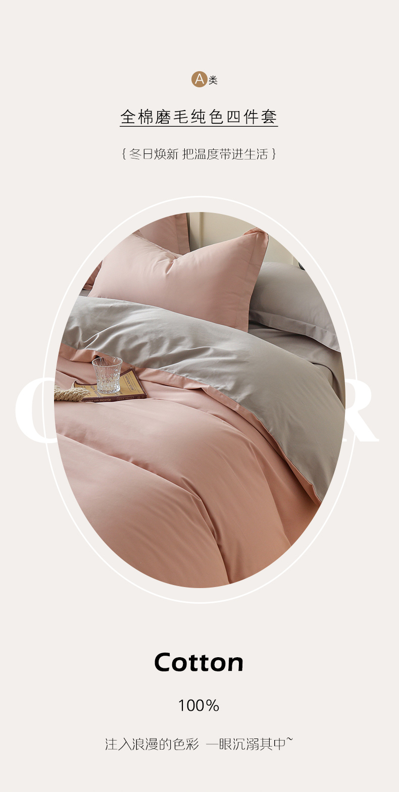 当前位置: 91家纺网 > 商品网购 > 床品套件 > 四件套 > 磨毛活性四件套 > 2023A类纯色纯棉磨毛四件套 复古粉+苏木灰