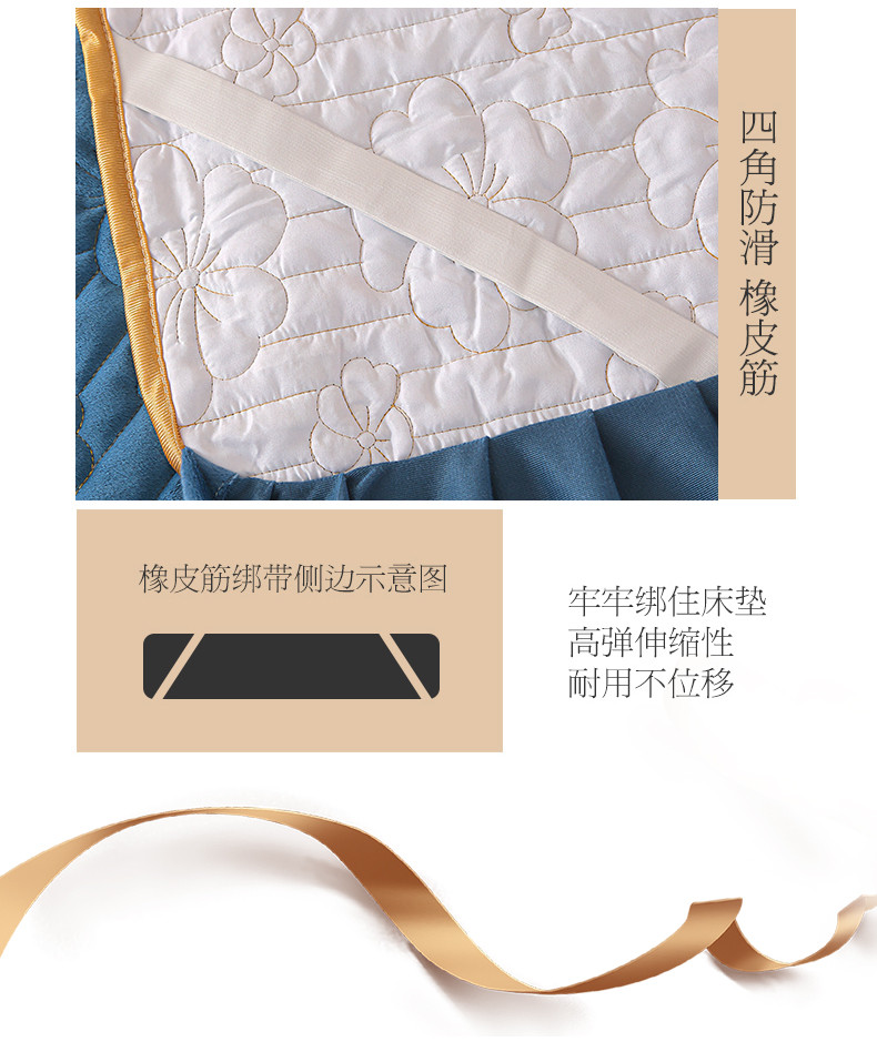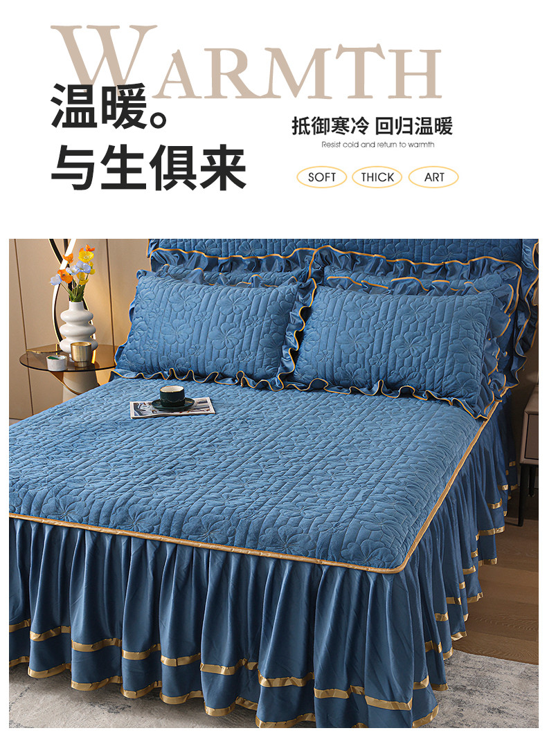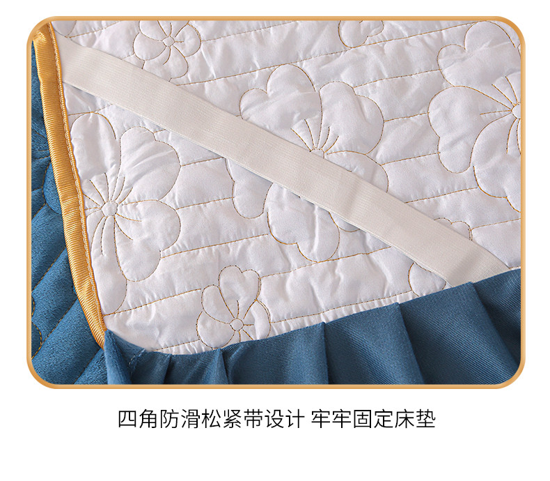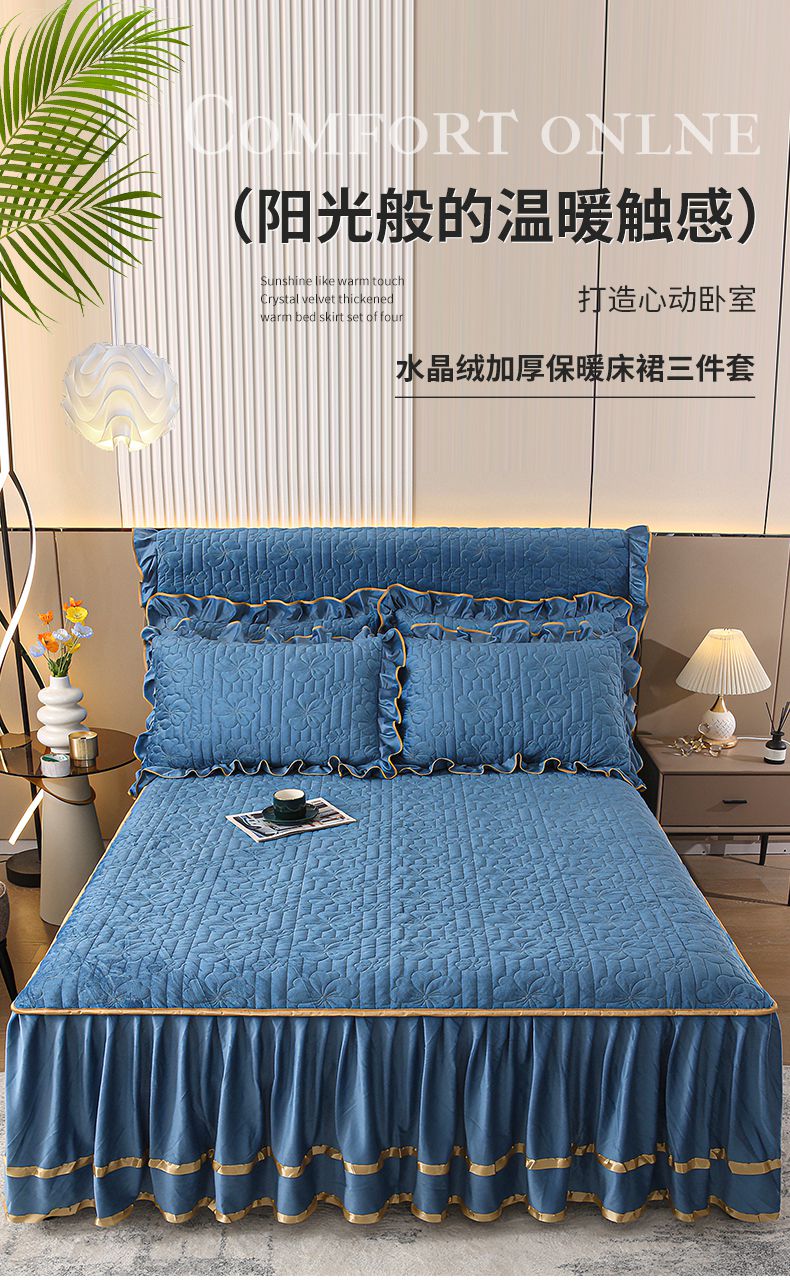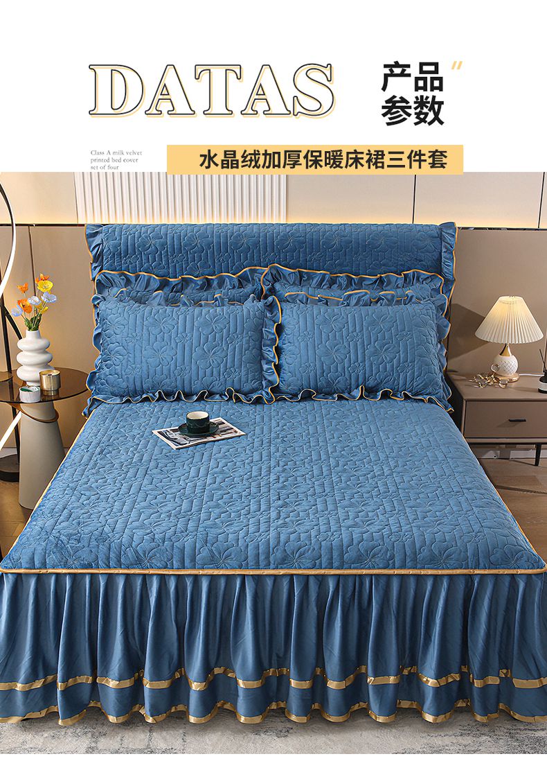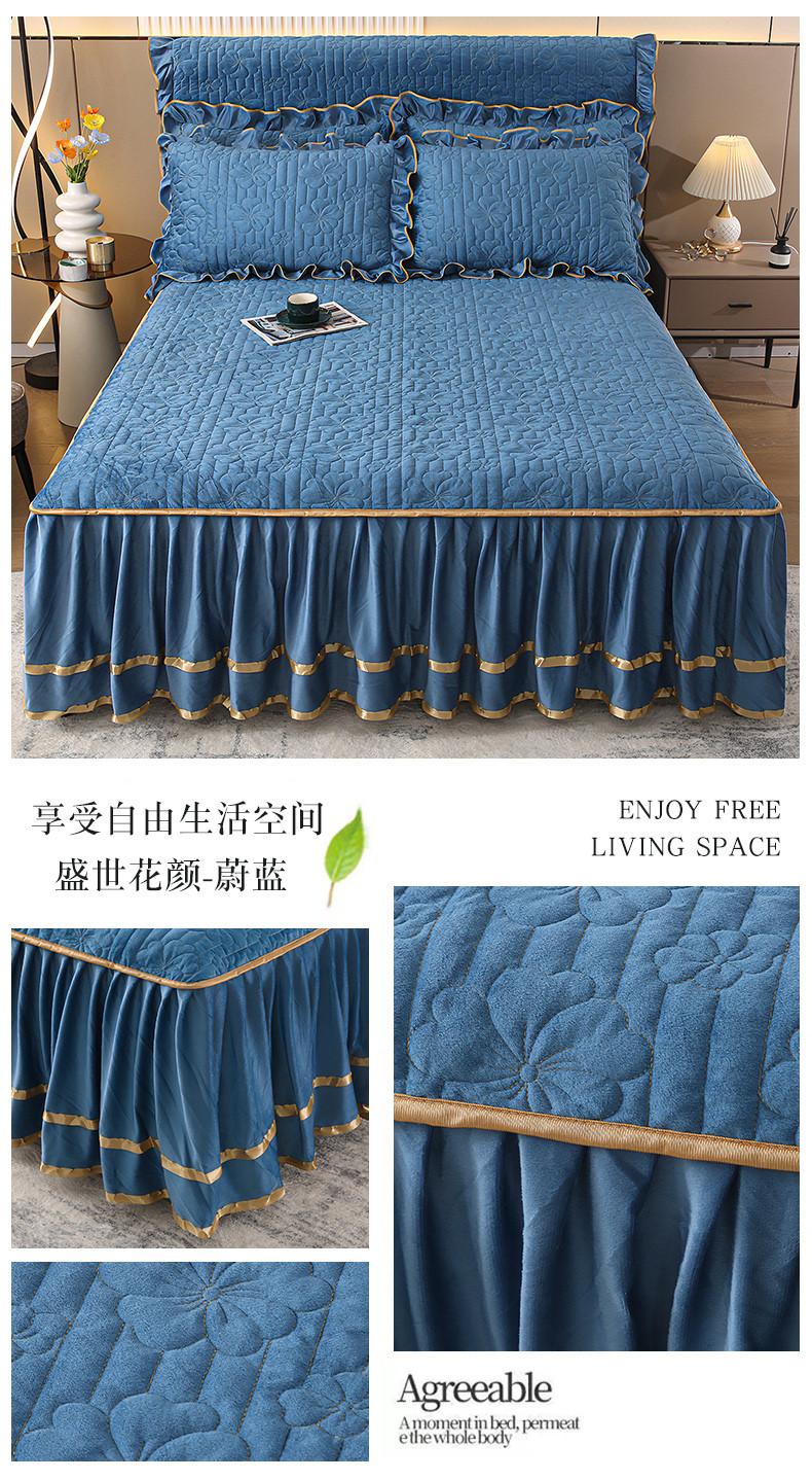 新款水晶绒加厚保暖单床裙-盛世花颜 盛世花颜-蔚蓝