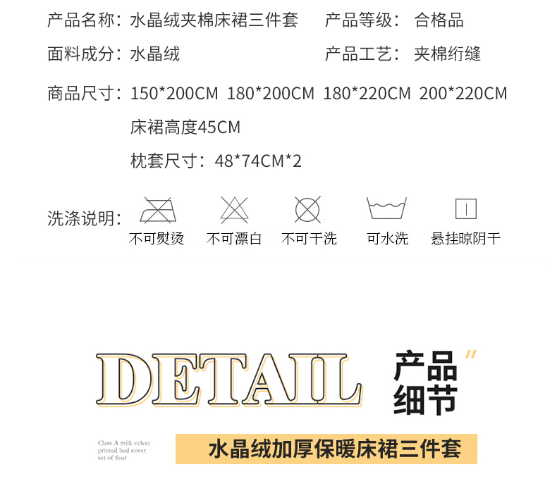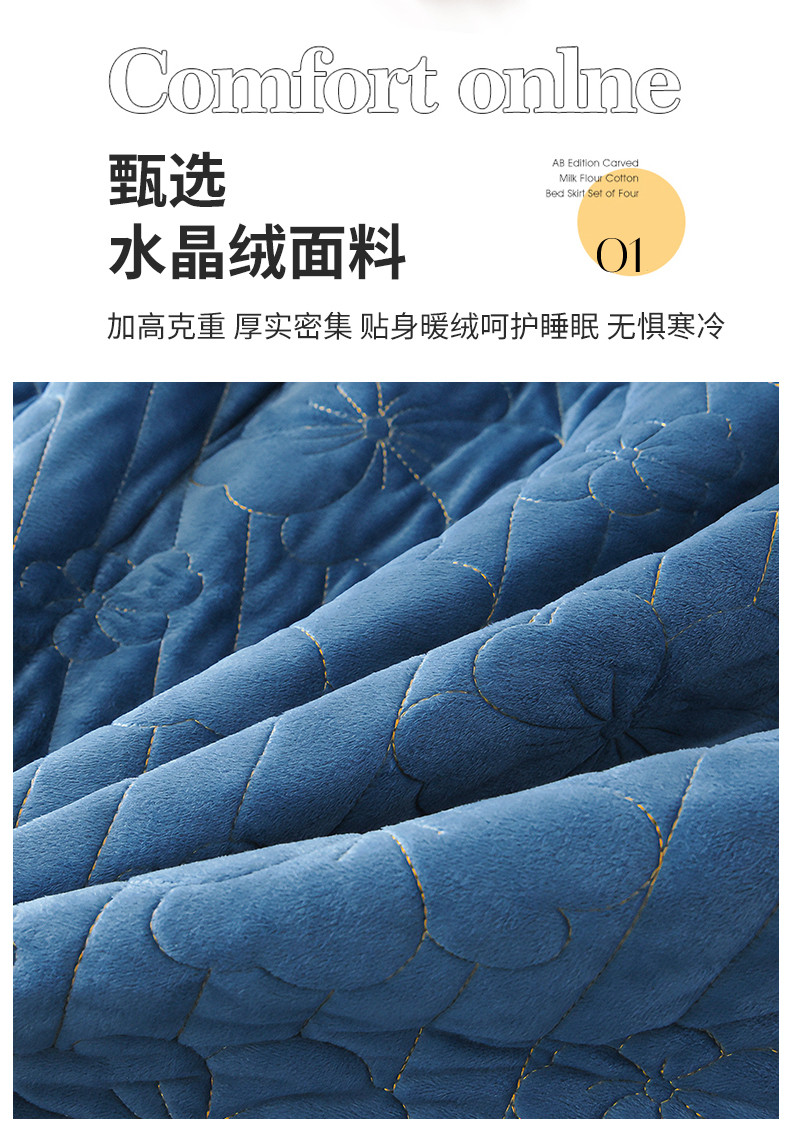 商品名称:新款水晶绒加厚保暖单床裙-盛世花颜 盛世花颜-蔚蓝
