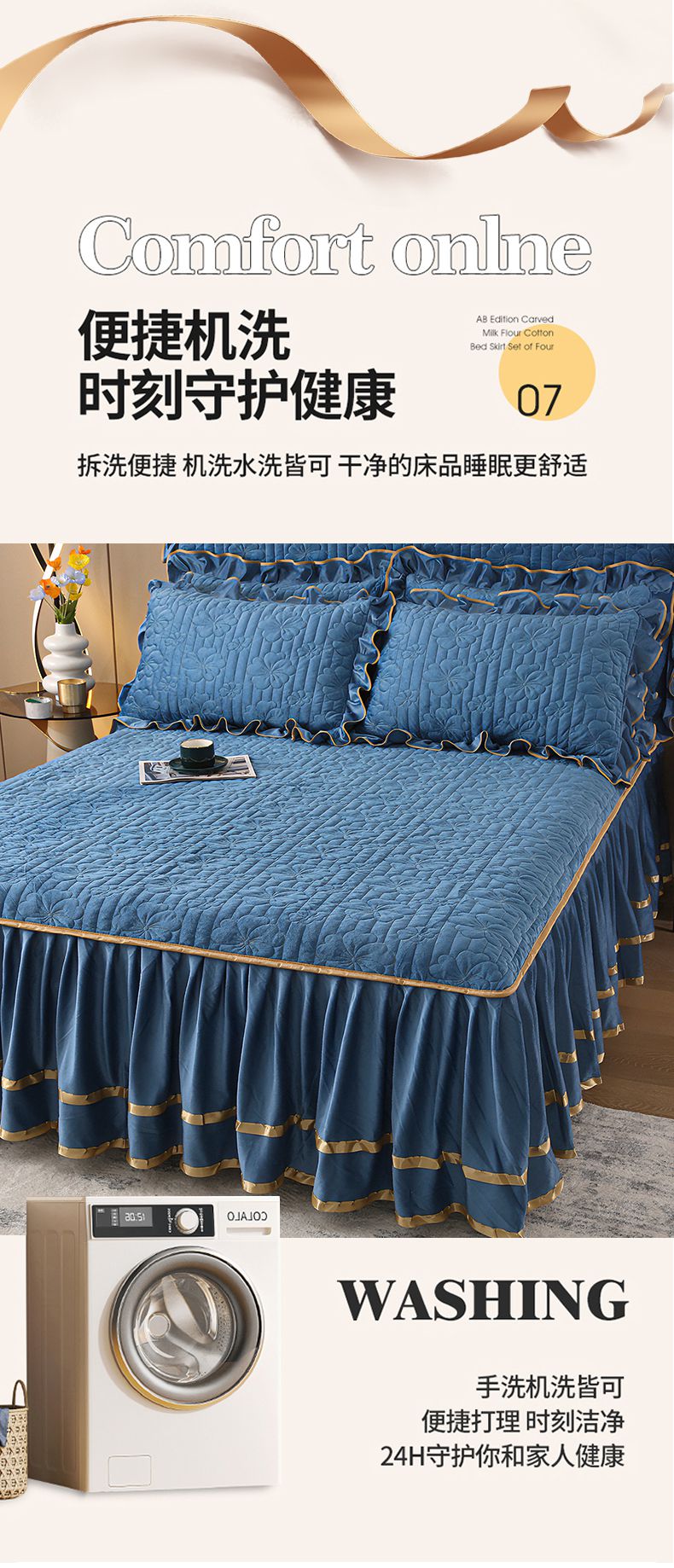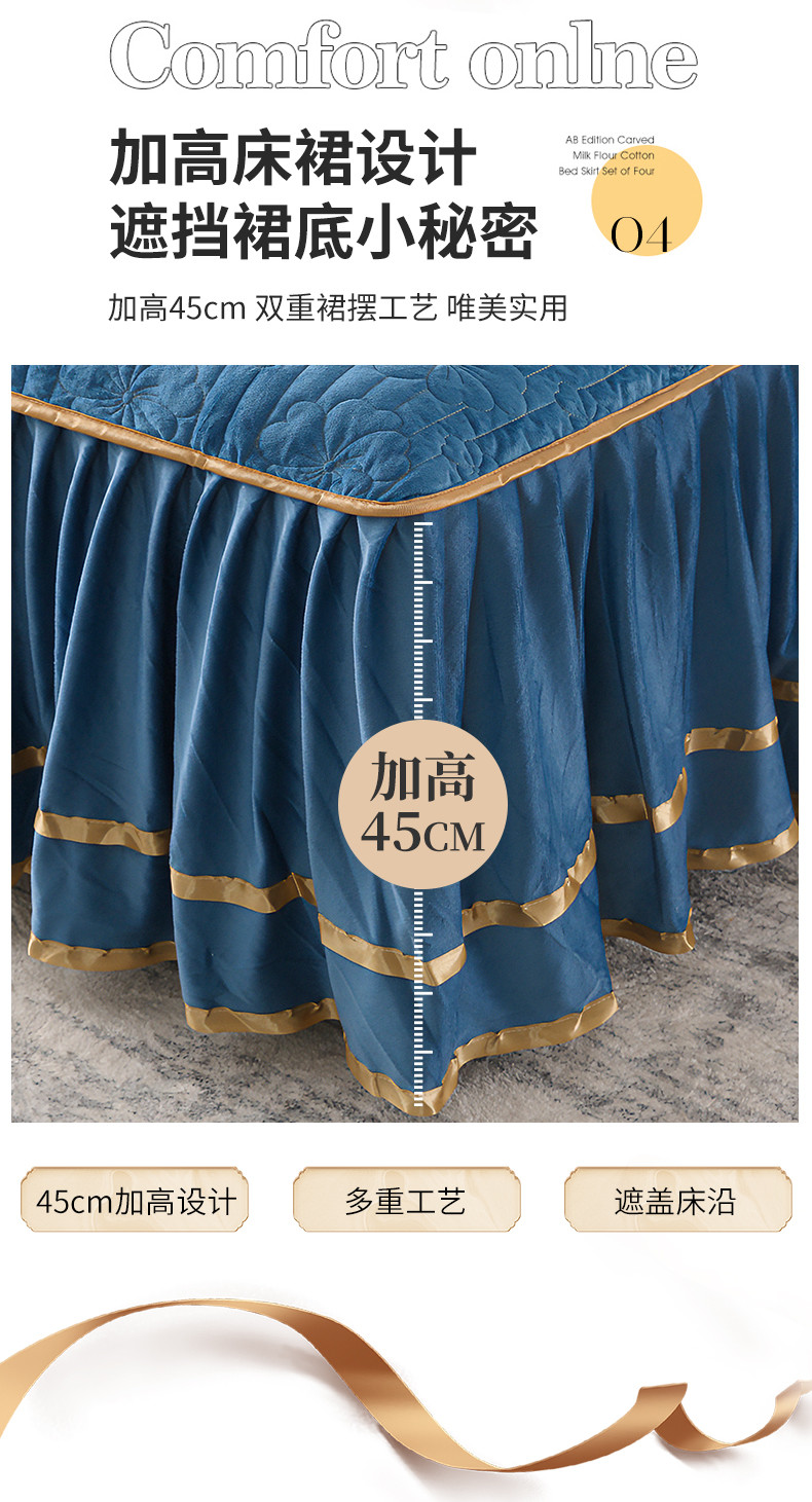 (总)屹成家纺2025新款水晶绒夹棉绗缝床裙四件套(塞纳河畔)四件套起售价不低于230元,大红,豆沙,翡翠绿,粉玉,橄榄绿,蔚蓝,银灰