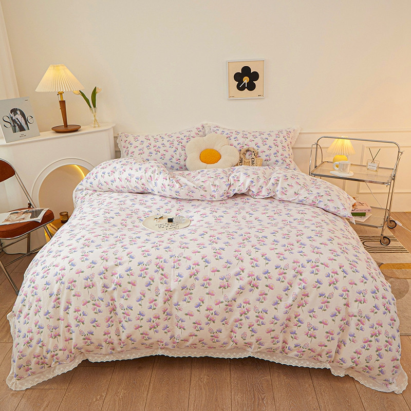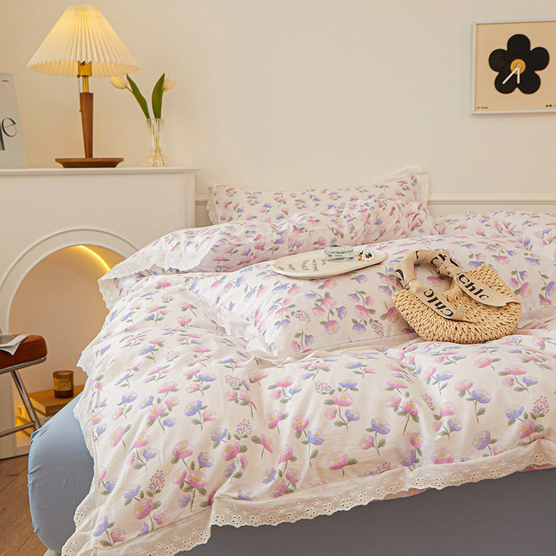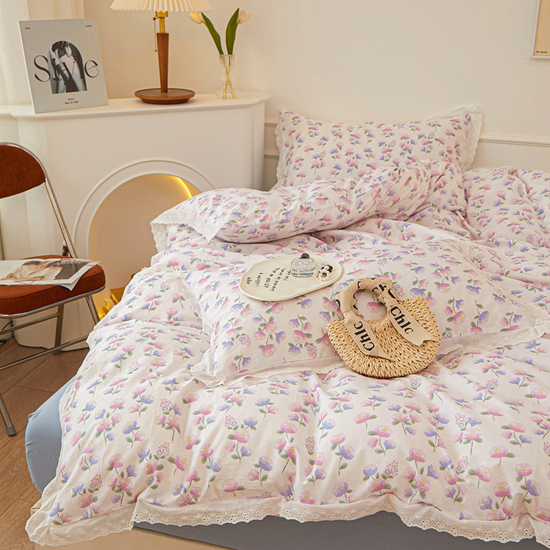 一米阳光 2023秋季新款纯棉花边款四件套 牵牛