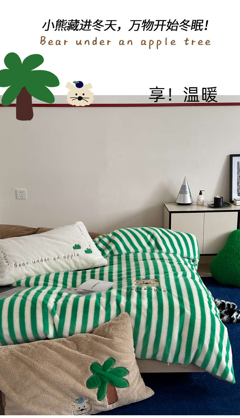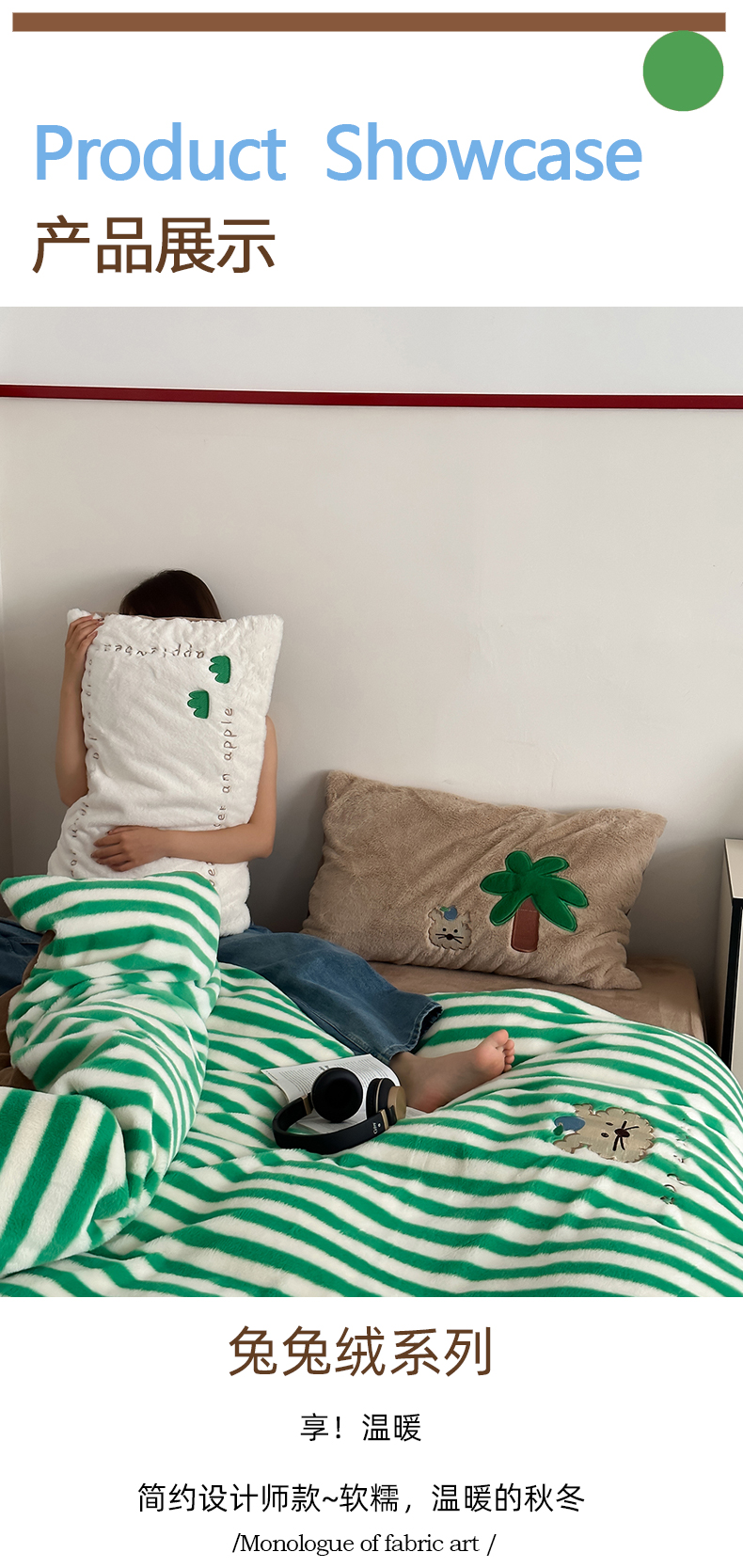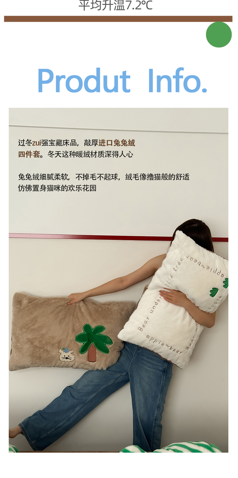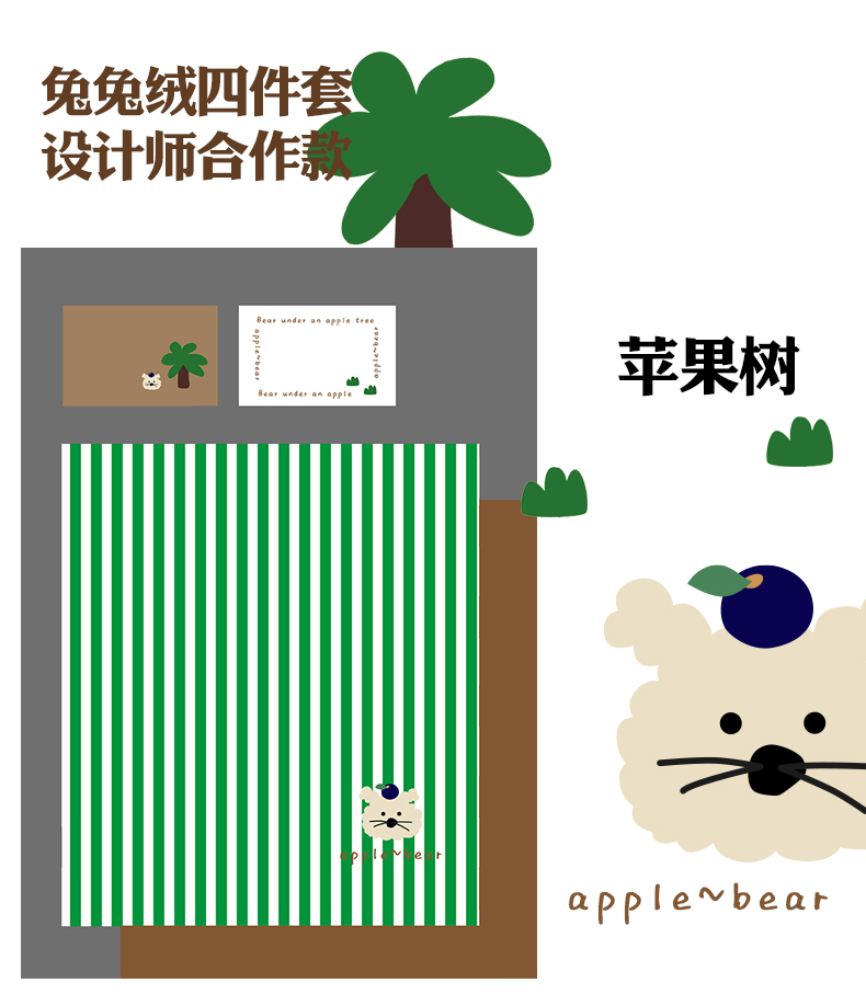 商品名称:(总)桔子家纺 2023新款精致刺绣兔兔绒卡通四件套--苹果树