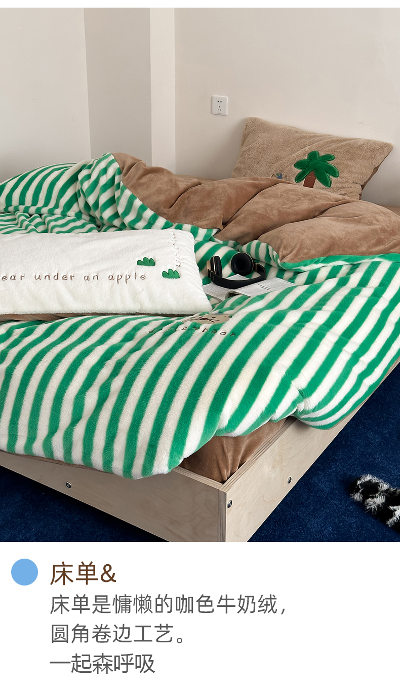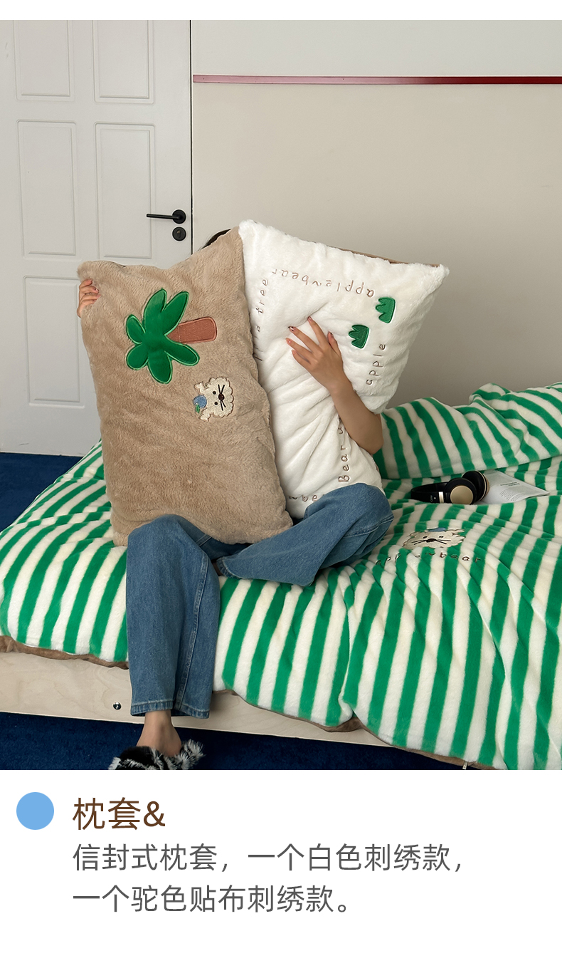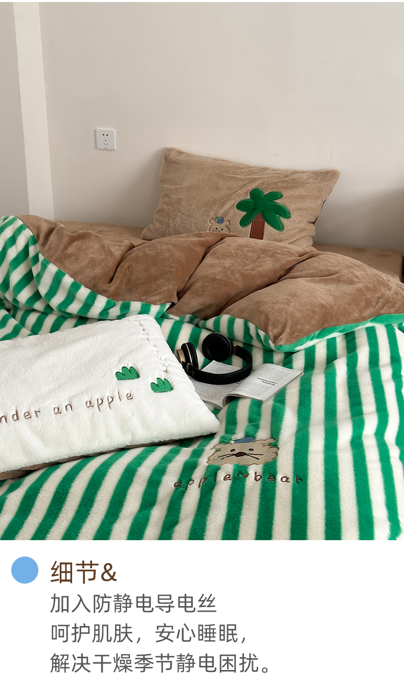 商品名称:(总)桔子家纺 2023新款精致刺绣兔兔绒卡通四件套--苹果树