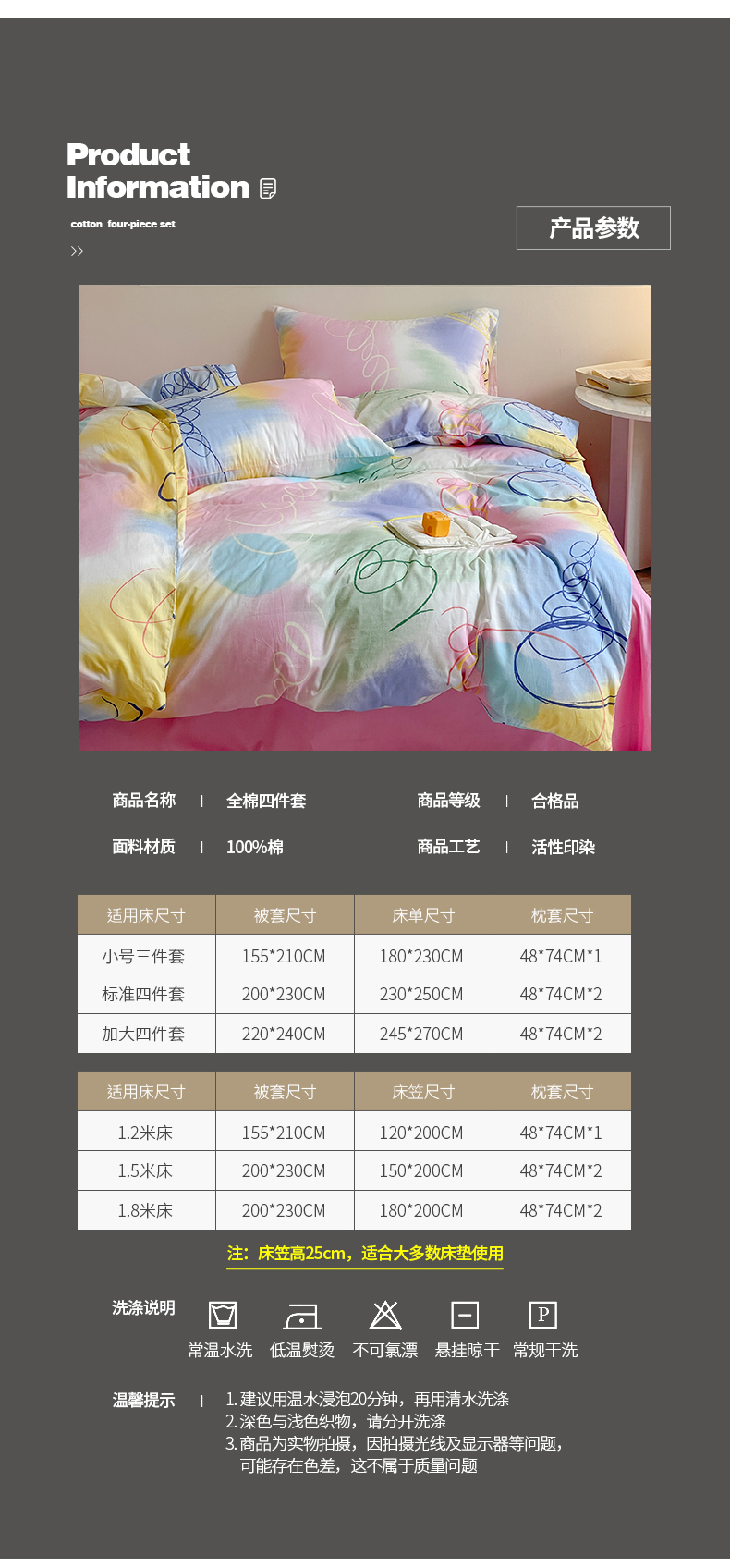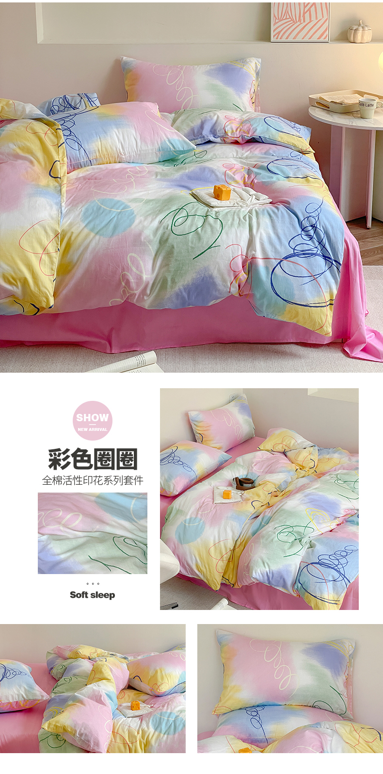 当前位置: 91家纺网 > 商品网购 > 床品套件 > 四件套 > 全棉普通四件套 > 窝米 2024春季新品13370全棉四件套系列 彩色圈圈