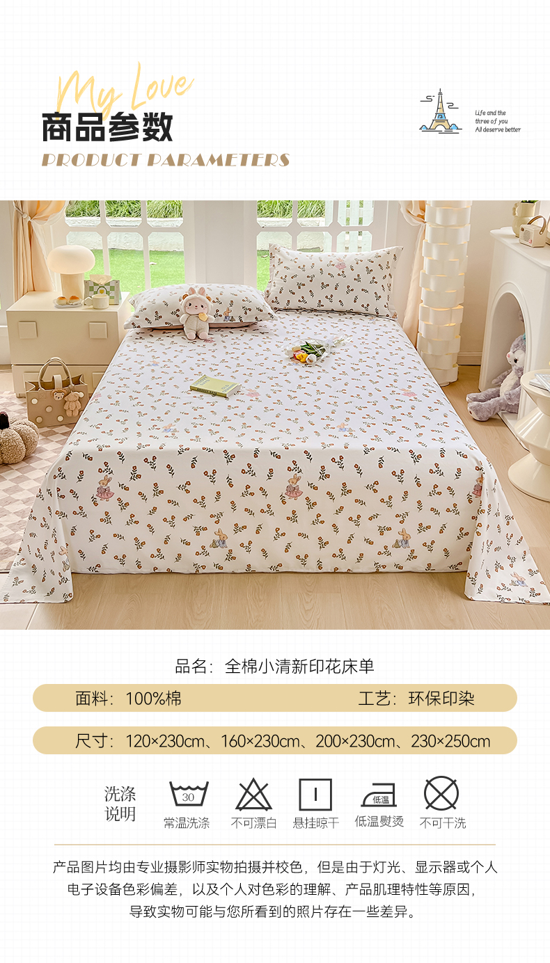 商品名称:绵庭家纺 2023新款12868系列全棉小清新印花单床单 香草之恋