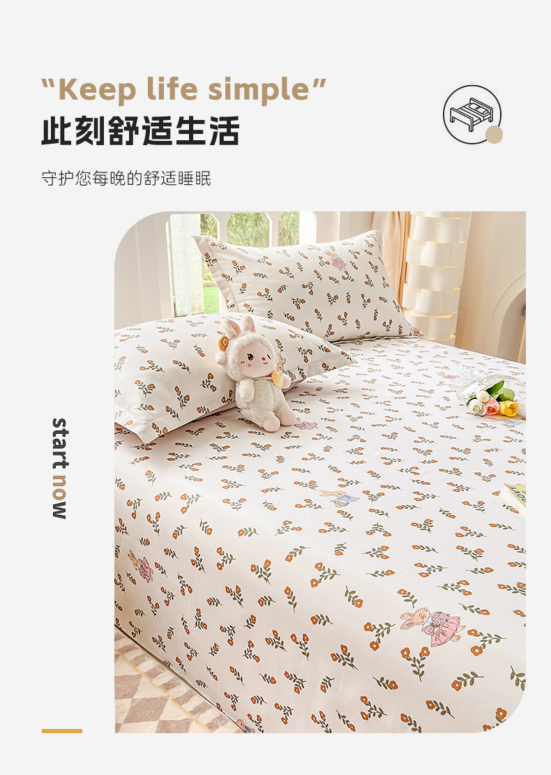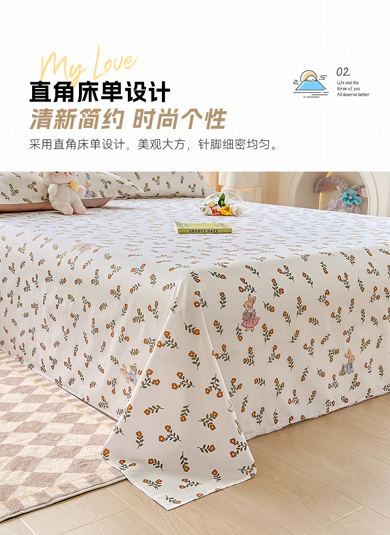 绵庭家纺 2023新款12868系列全棉小清新印花单床单 香草之恋