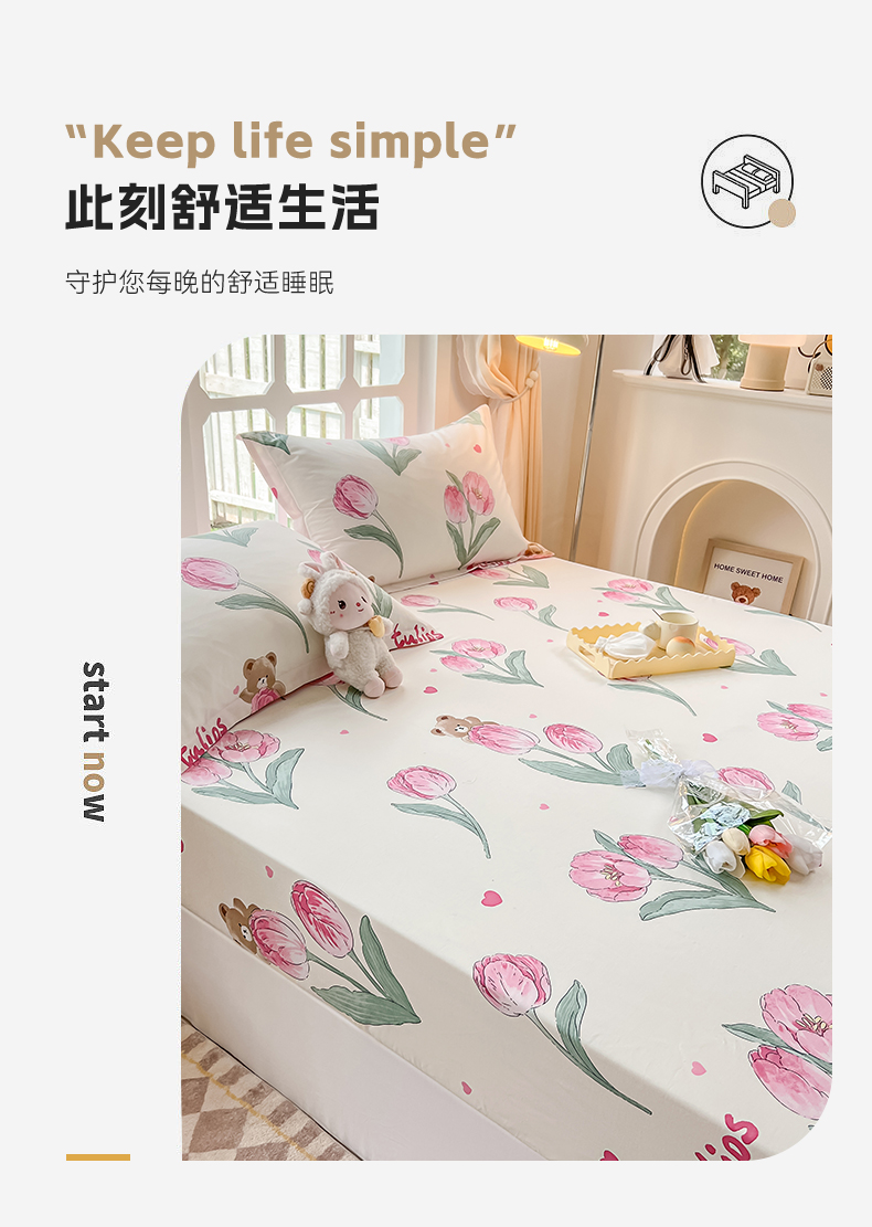商品名称:绵庭家纺 2023新款12868系列全棉小清新印花单床笠 茉莉幻想