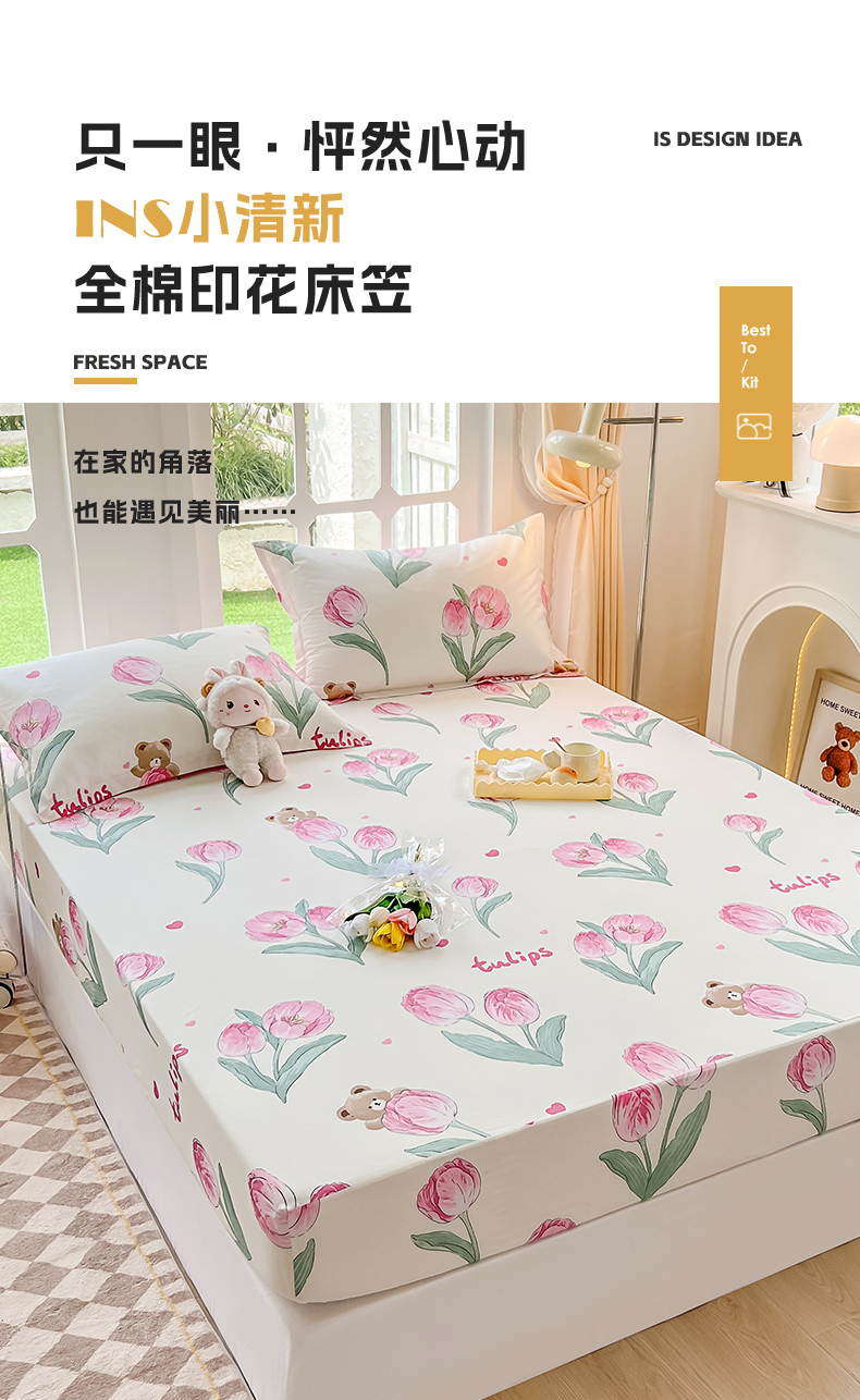 绵庭家纺 2023新款12868系列全棉小清新印花单床笠 茉莉幻想