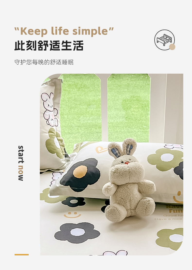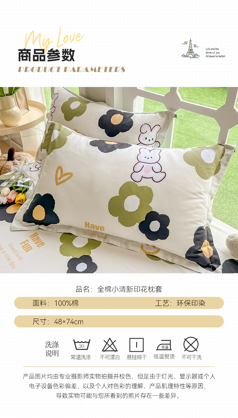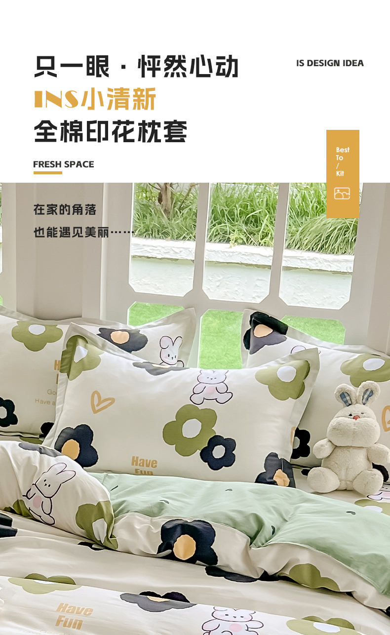 绵庭家纺 2023新款12868系列全棉小清新印花单枕套 皮皮兔