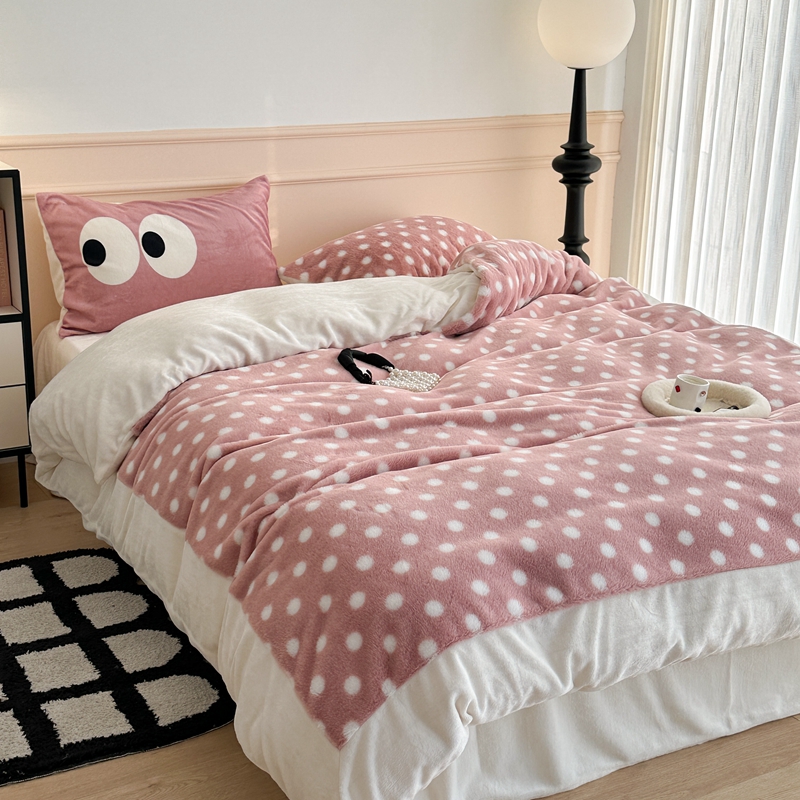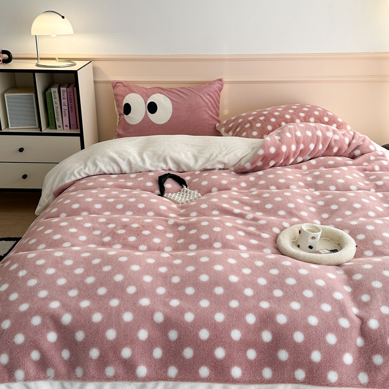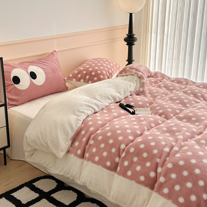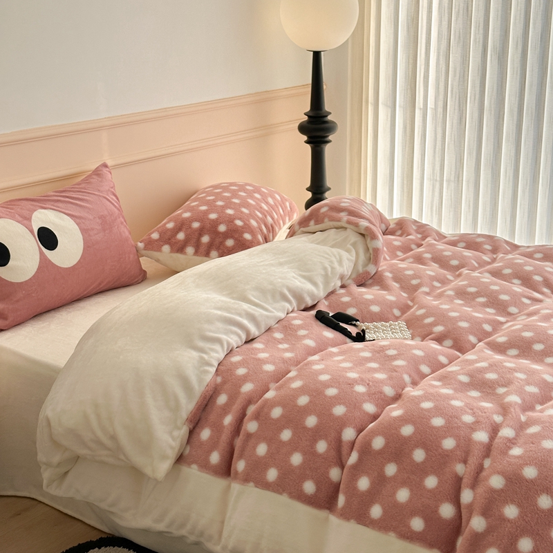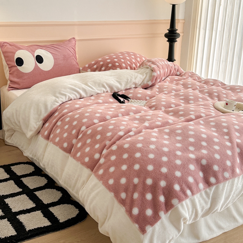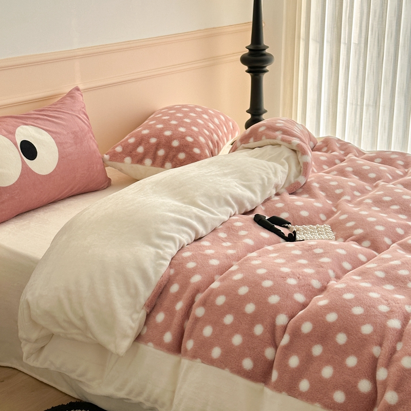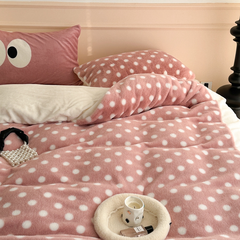 昔可家纺 2023新款波点兔兔绒拼接牛奶绒四件套 粉玉波点