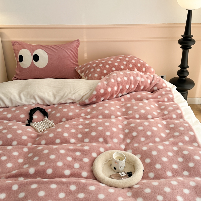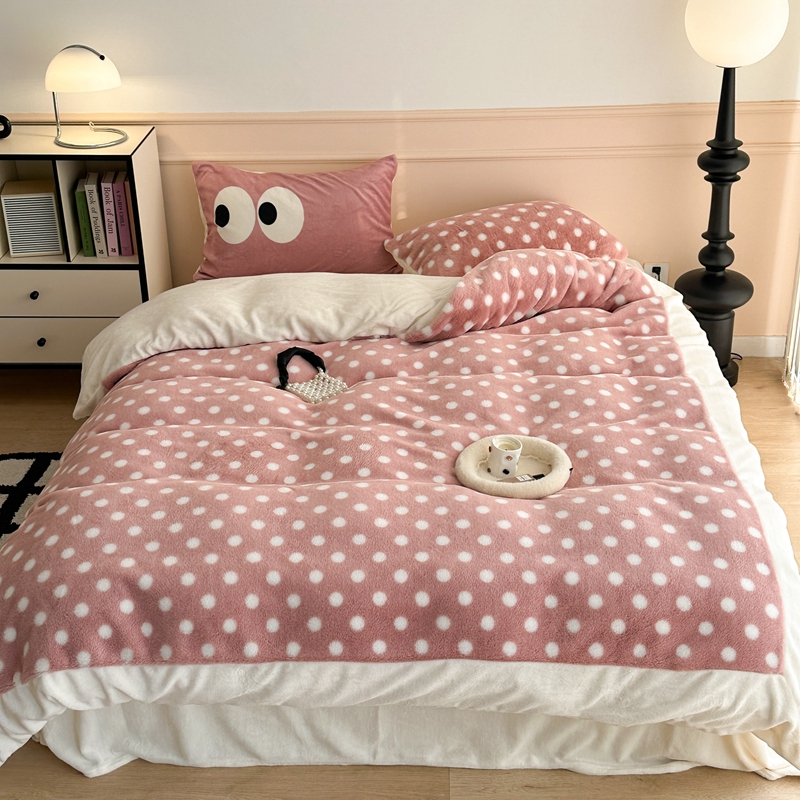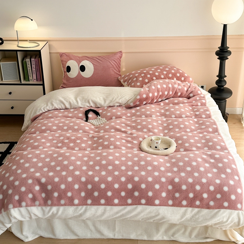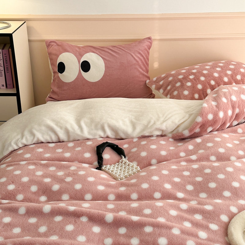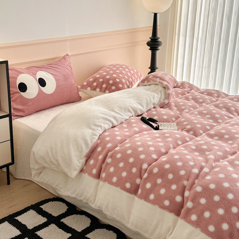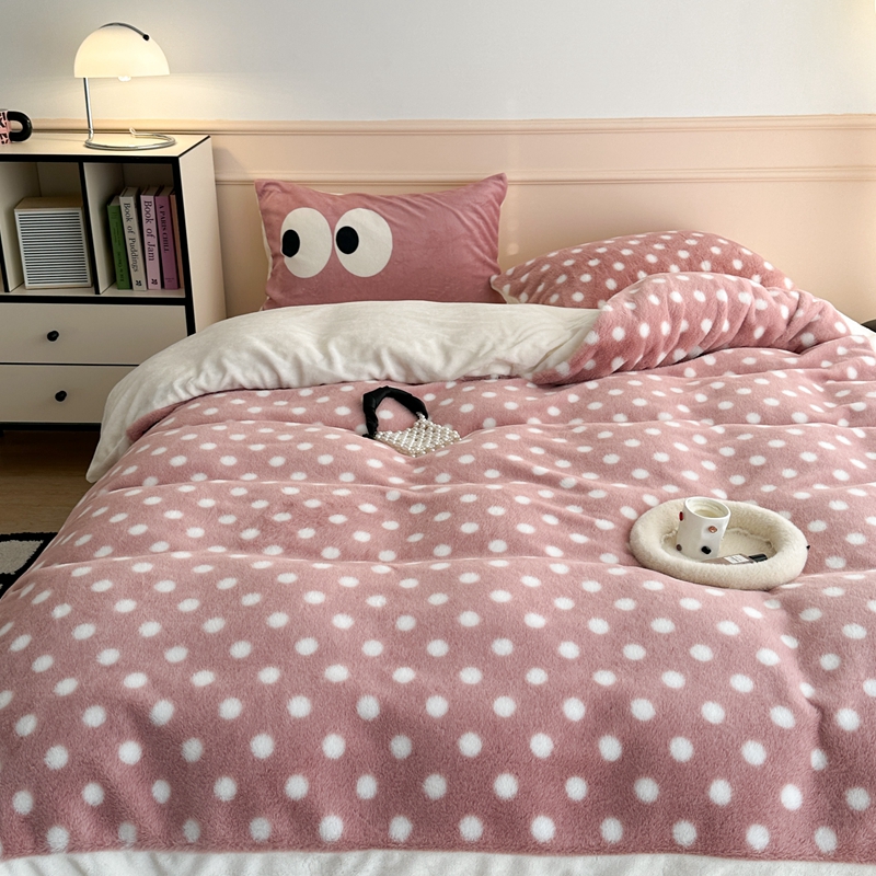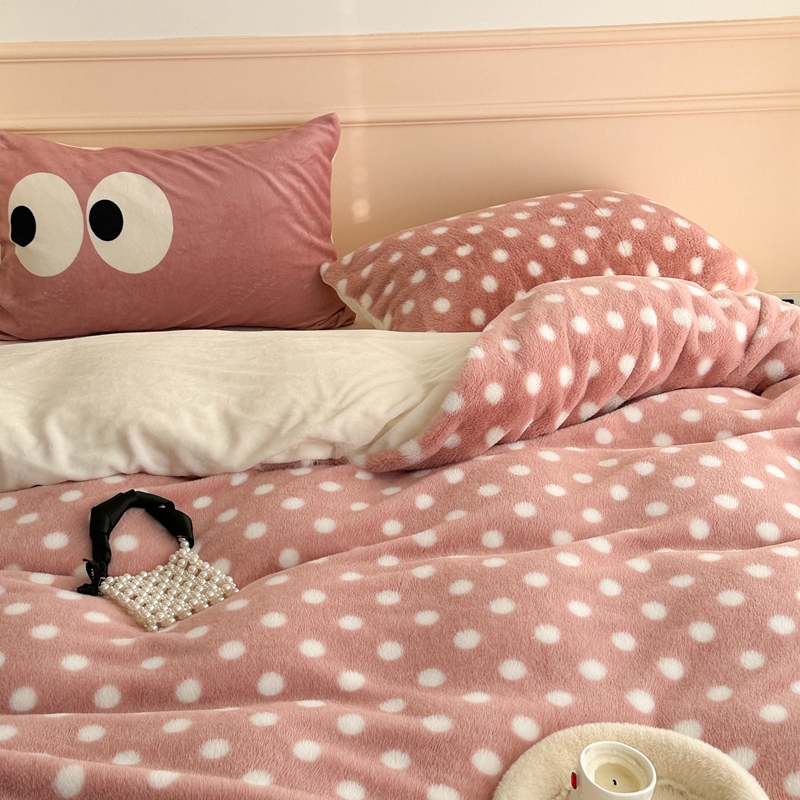 昔可家纺 2023新款波点兔兔绒拼接牛奶绒四件套 粉玉波点