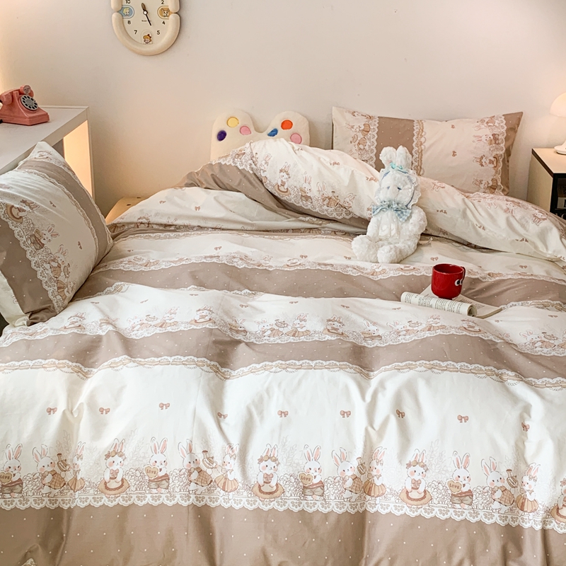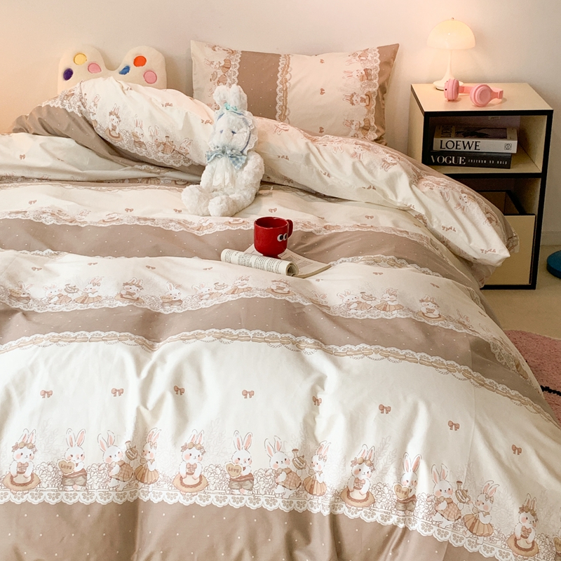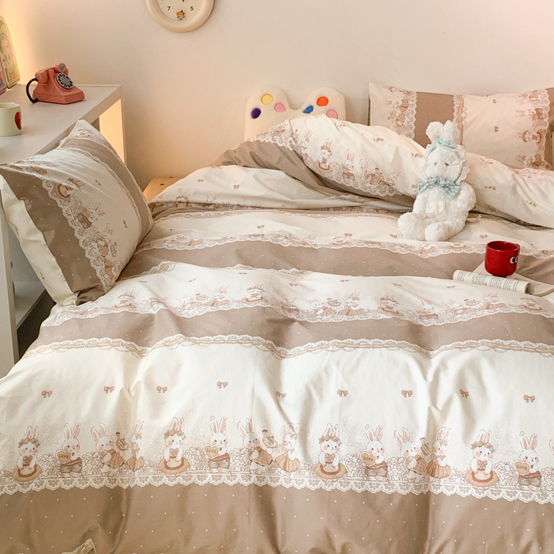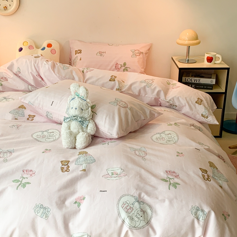 (总)昔可家纺 2024新款印花牛奶绒四件套系列-洛丽塔风,萝莉小兔,小熊烘焙屋,小熊玩偶屋