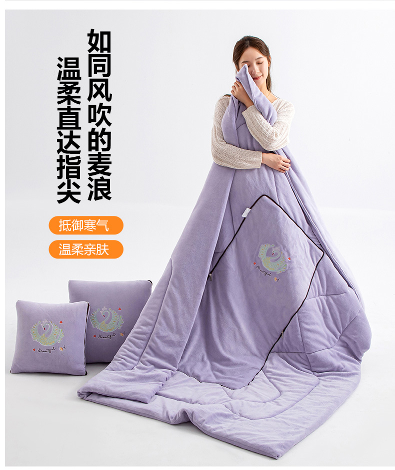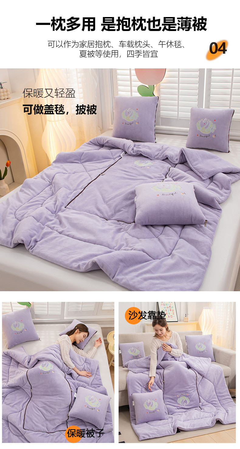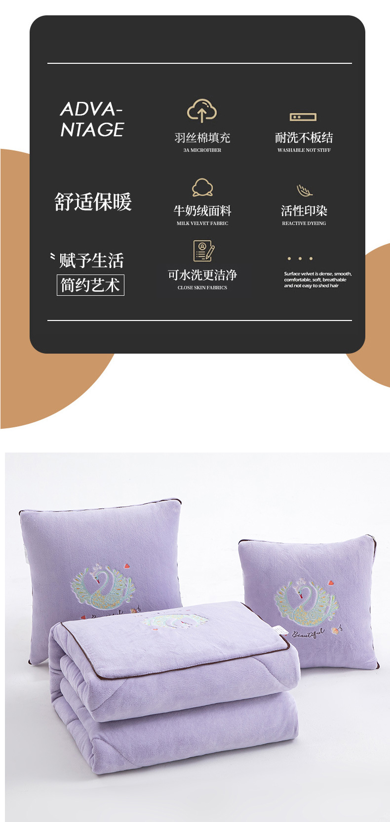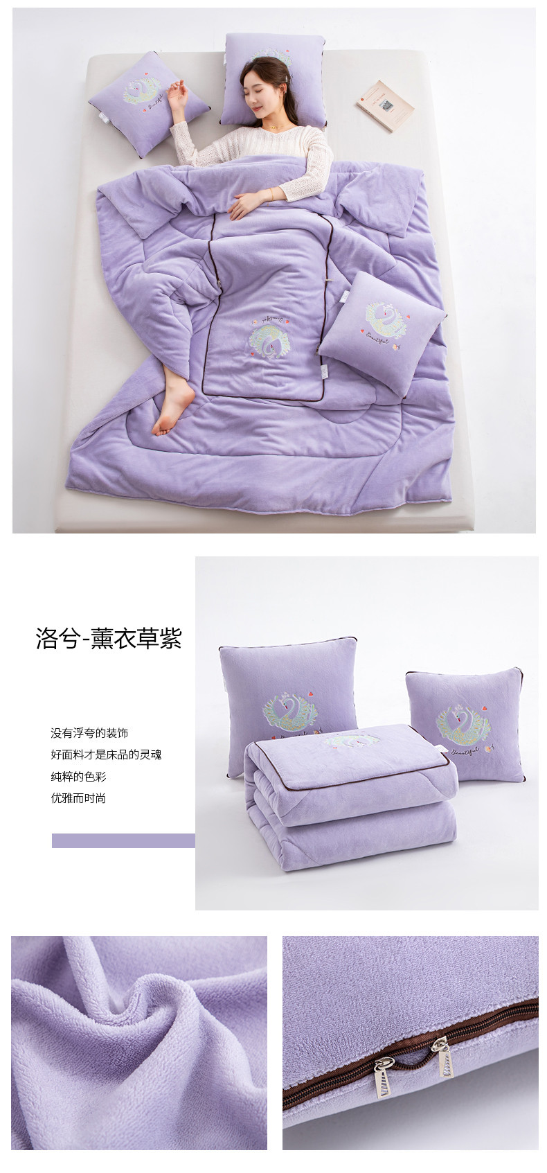 商品名称:翰轩家居 2023新款牛奶绒轻奢大牌风刺绣抱枕被 洛兮-薰衣草紫