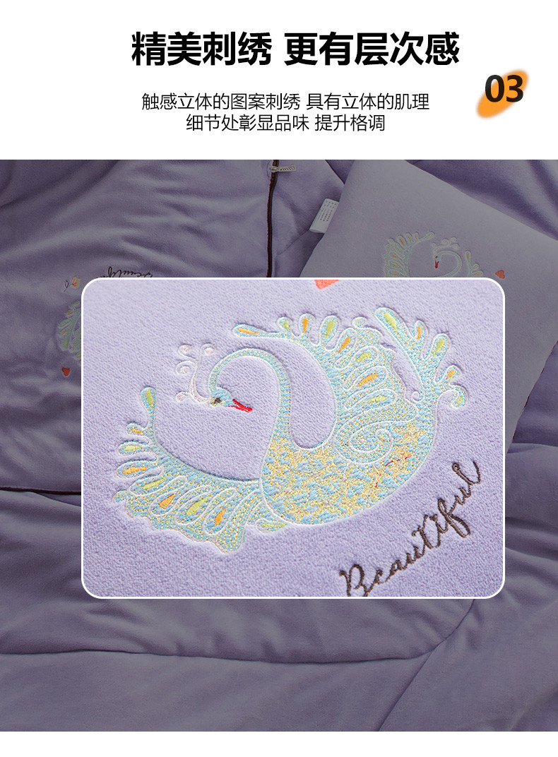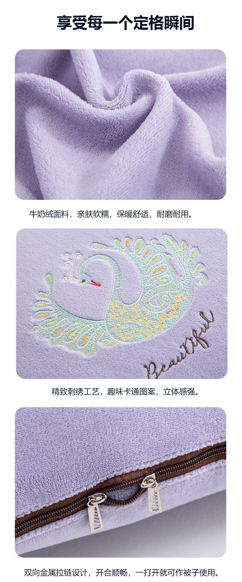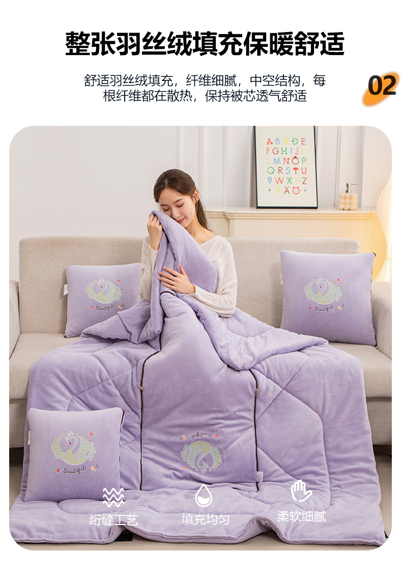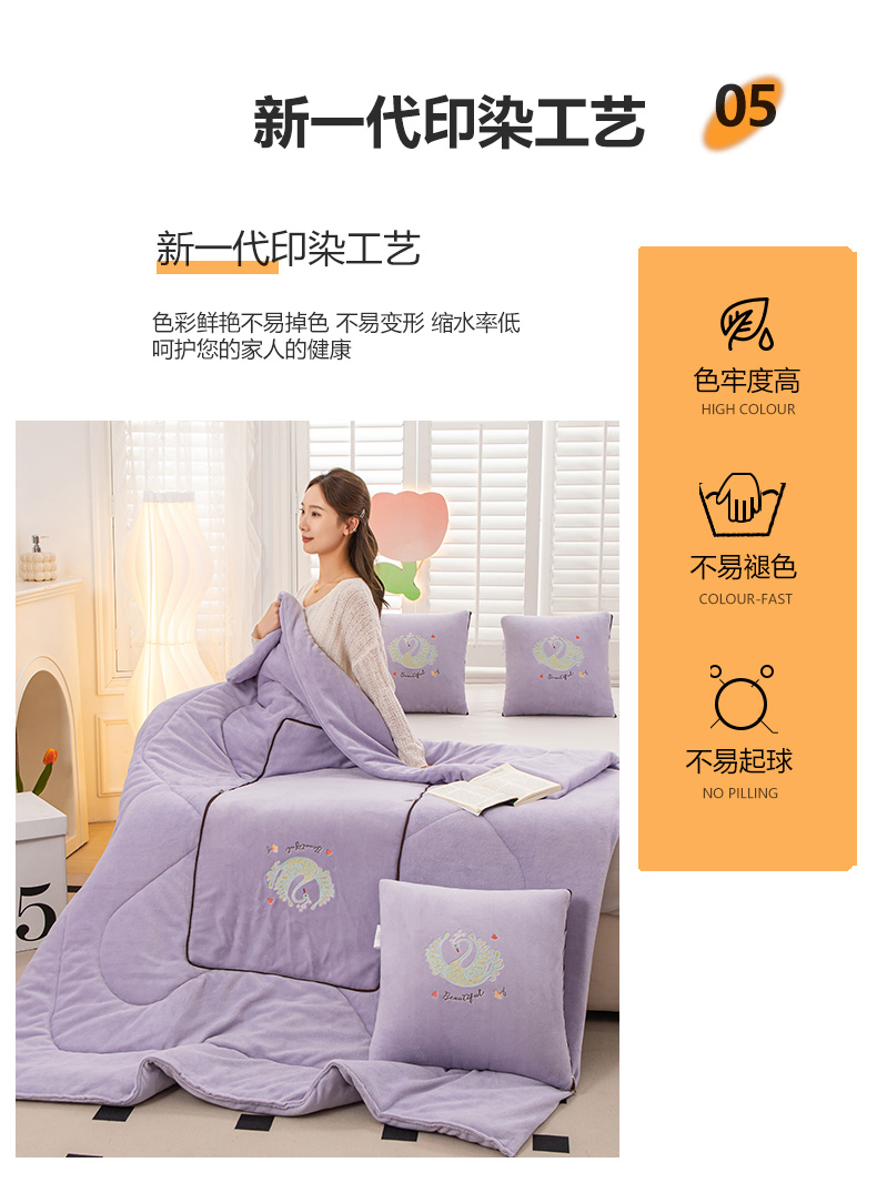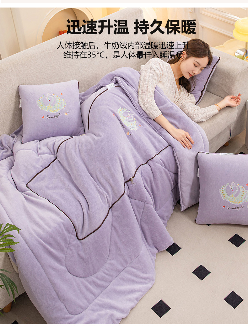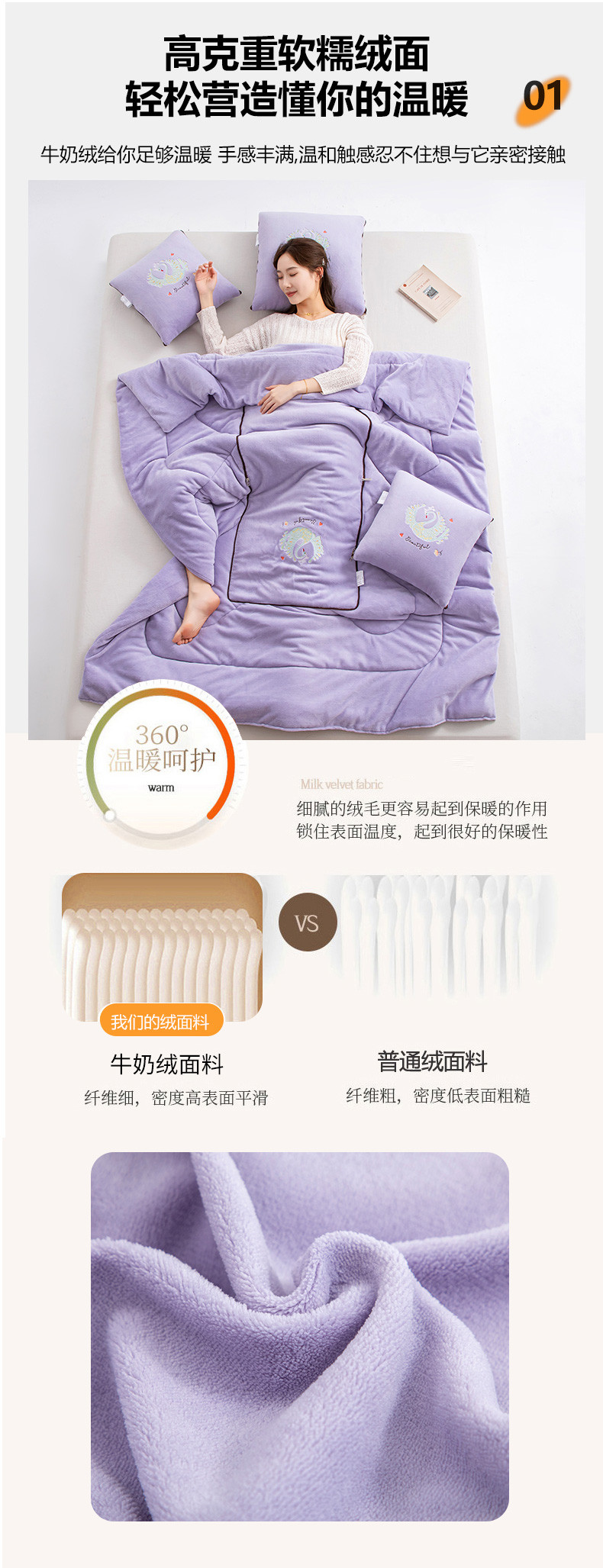 翰轩家居 2023新款牛奶绒轻奢大牌风刺绣抱枕被 洛兮-薰衣草紫