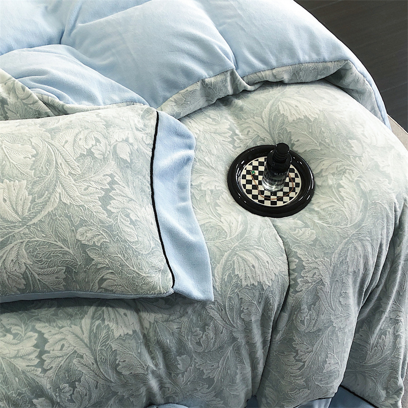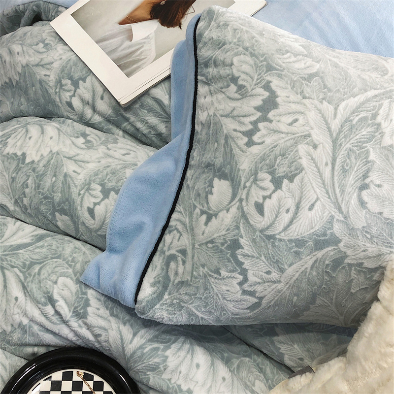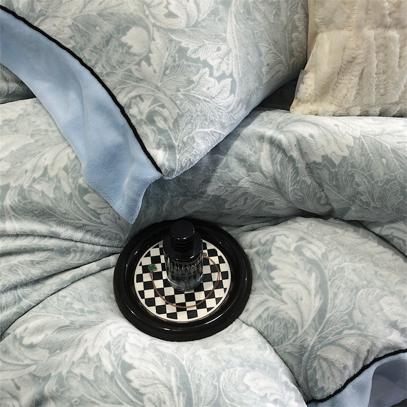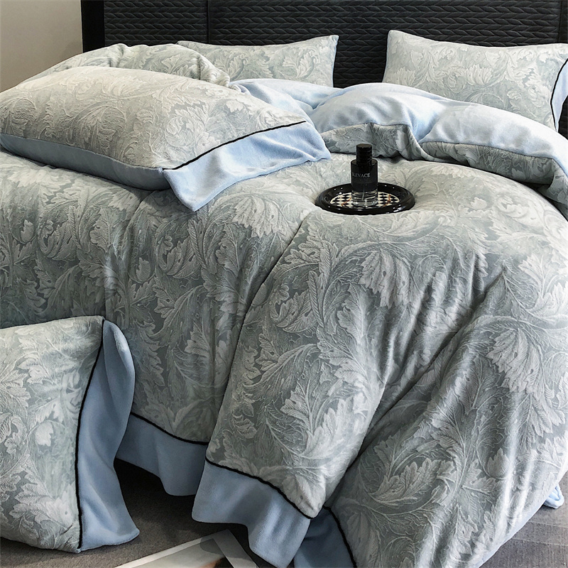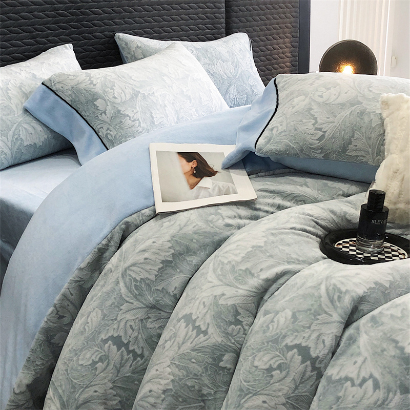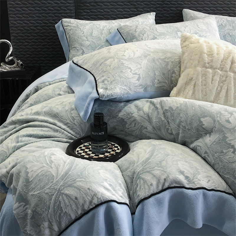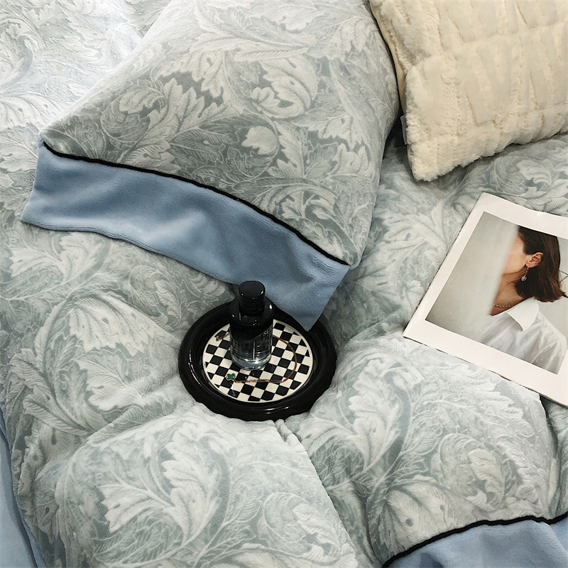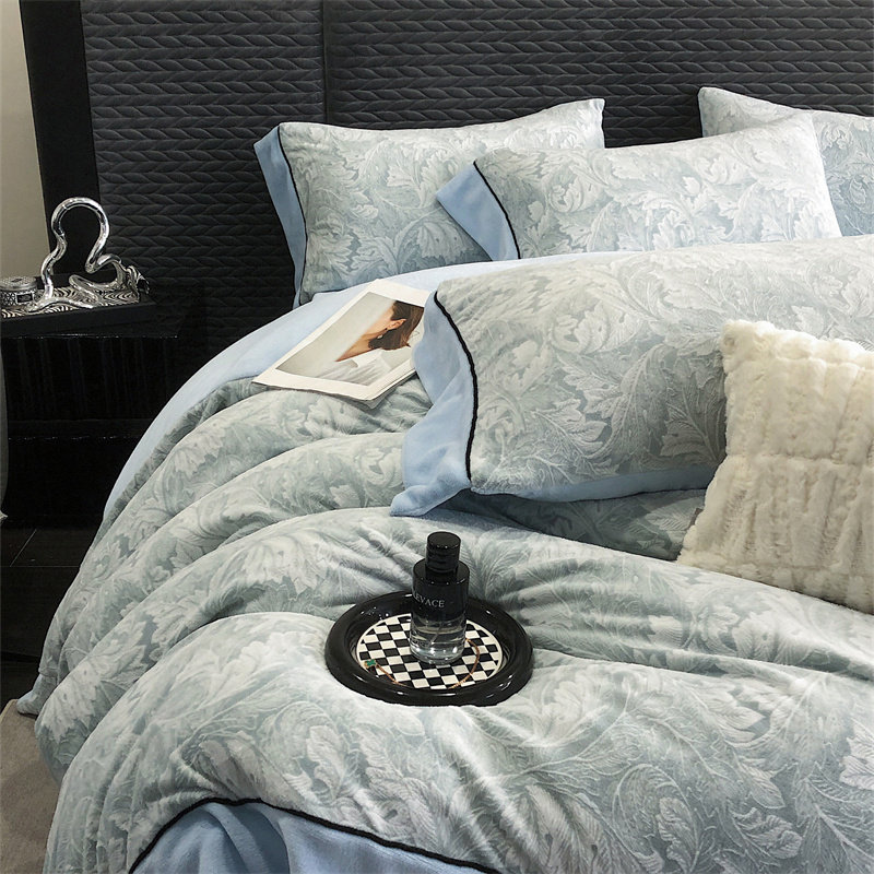 商品名称:博纳家纺 2023新款牛奶绒宽边四件套嵌绳系列 枝叶-蓝