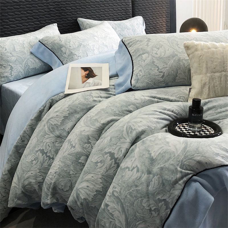 (总)博纳家纺 2025新款加厚牛奶绒雕花刺绣拼角四件套-海韵 控价劵后248(严格按控价来),粉玉,高级灰,咖色,香槟