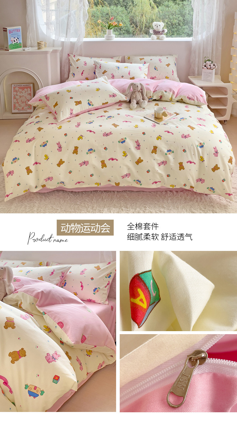 当前位置: 91家纺网 > 商品网购 > 床品套件 > 四件套 > 全棉普通四件套 > 金丝鸟 2023新款全棉可爱卡通印花小清新四件套-第二批 动物运动会