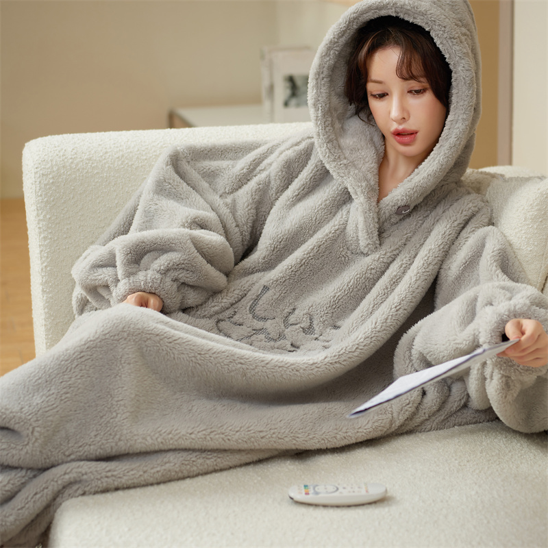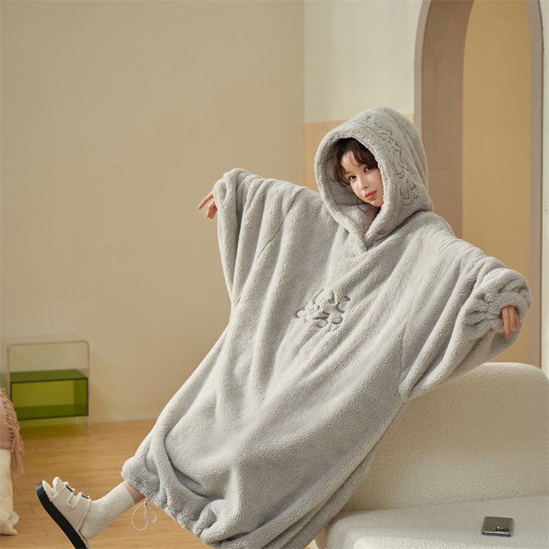 (总)洛兰沙家居馆 2024新款清新睡衣女秋冬三层夹棉珊瑚绒加厚保暖两件套女士可外穿加绒家居服,粉色,灰色,白色,玉色