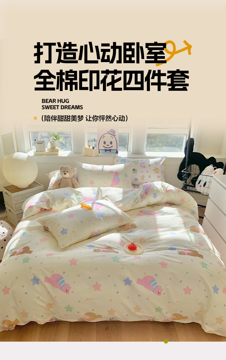 商品名称:澳萝拉 2024新款全棉印花亲肤舒适四件套 趴趴熊