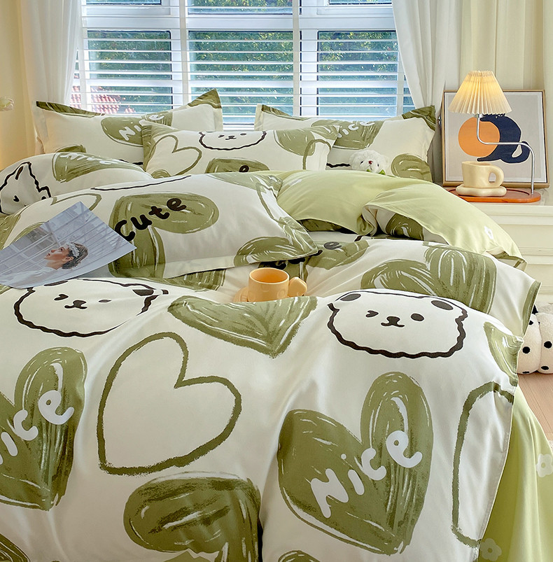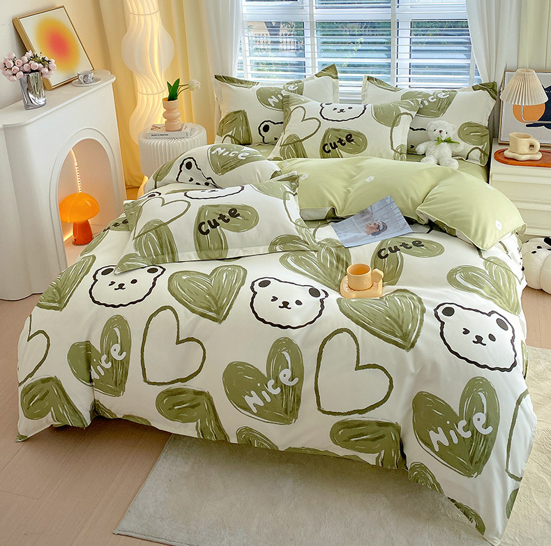好亿来 2025新款植物羊绒加厚斜纹磨毛四件套爱心熊