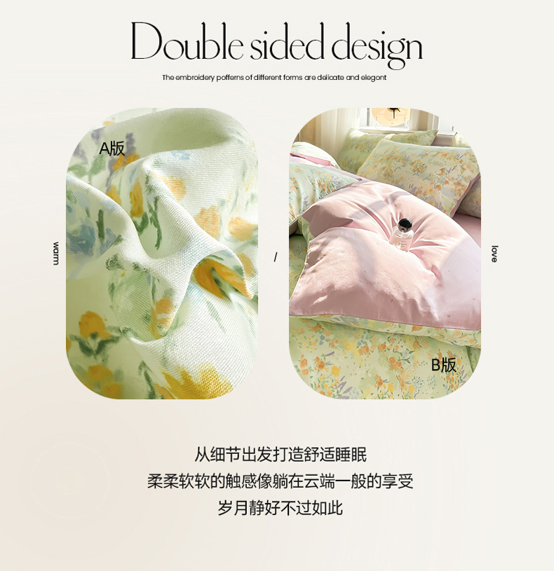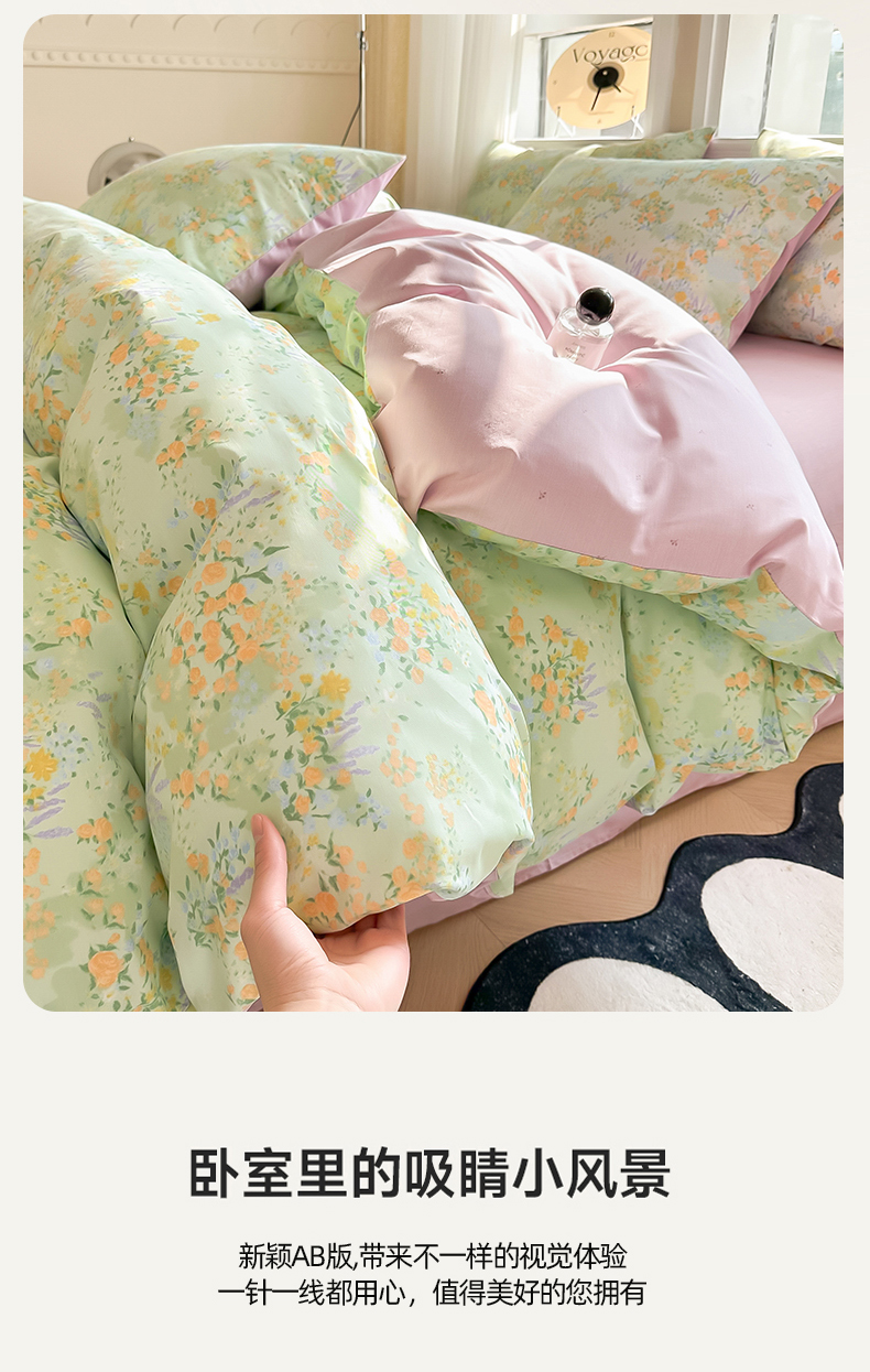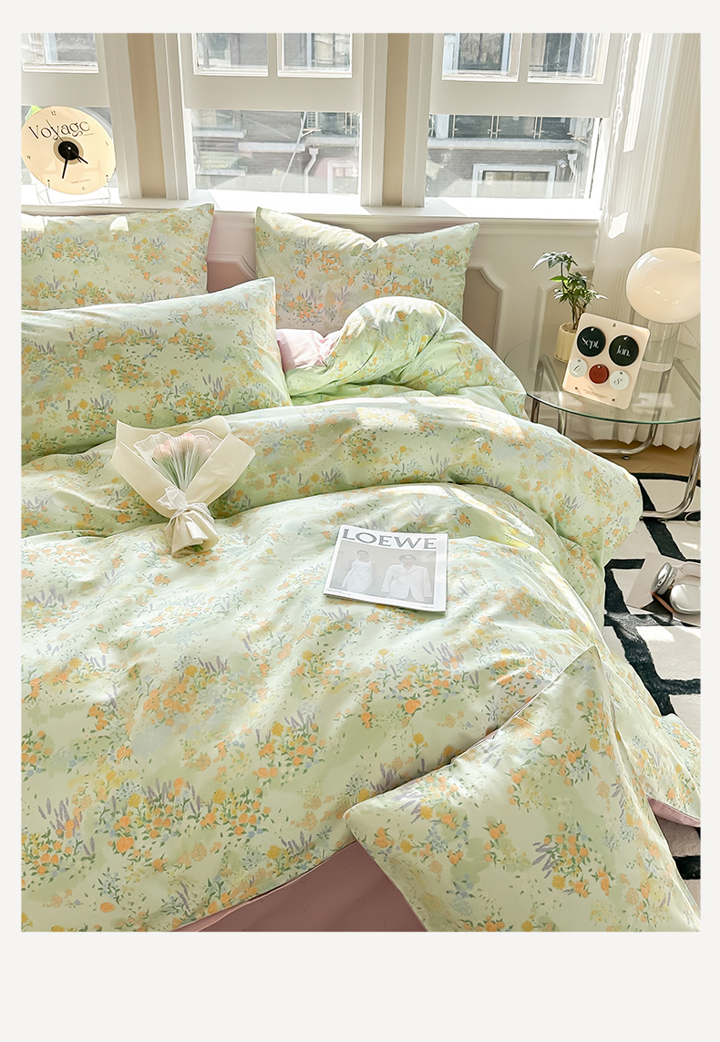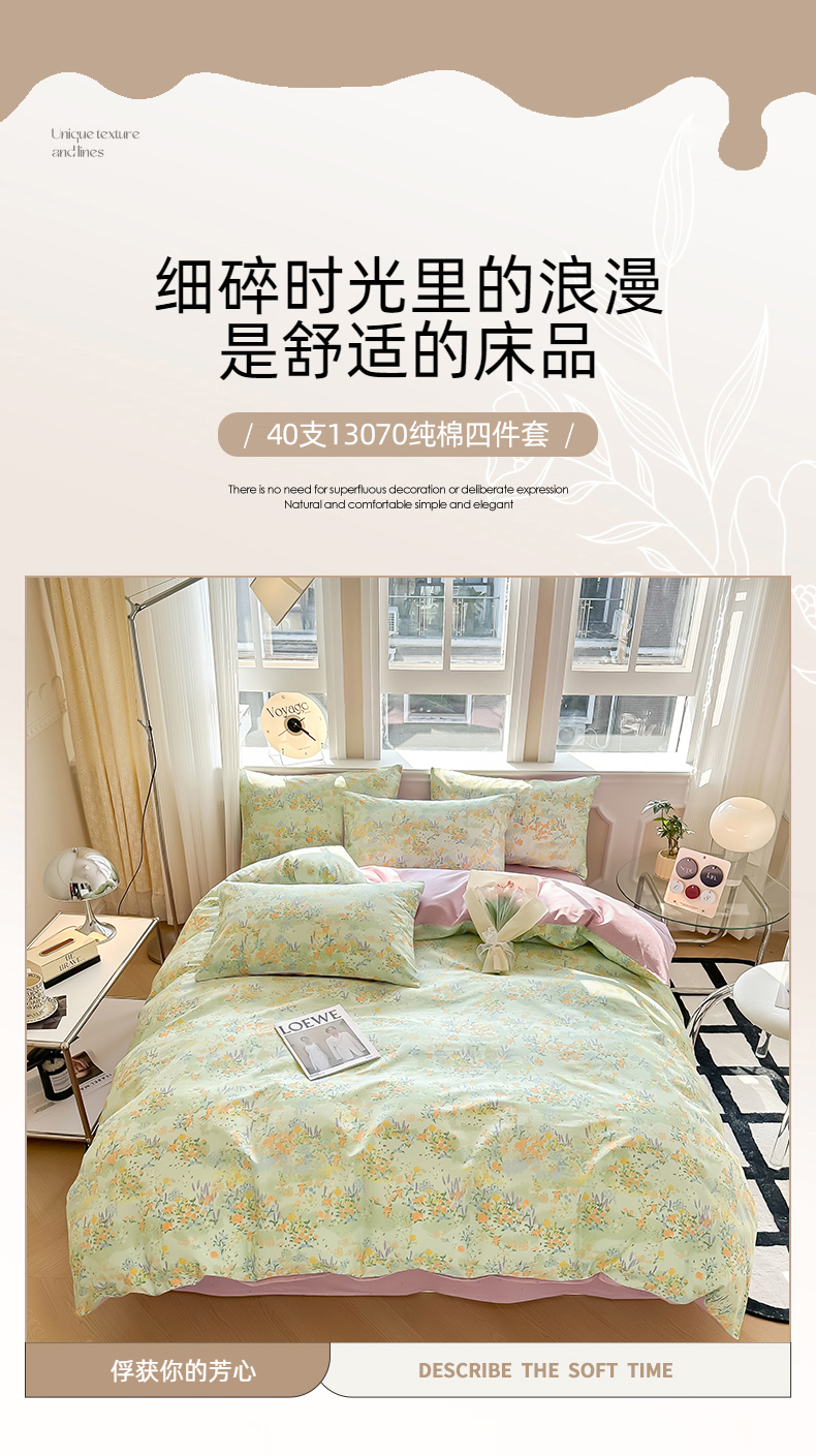 (总)简宜家居 2023新款纯棉全棉斜纹小清新宽边四件套,初遇见,繁花咖,花忆粉,青稚,倾心紫,素雅灰,东篱,锦簇,烂漫,浅牧
