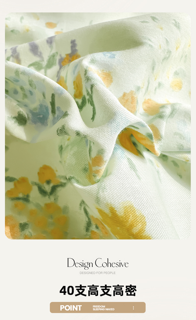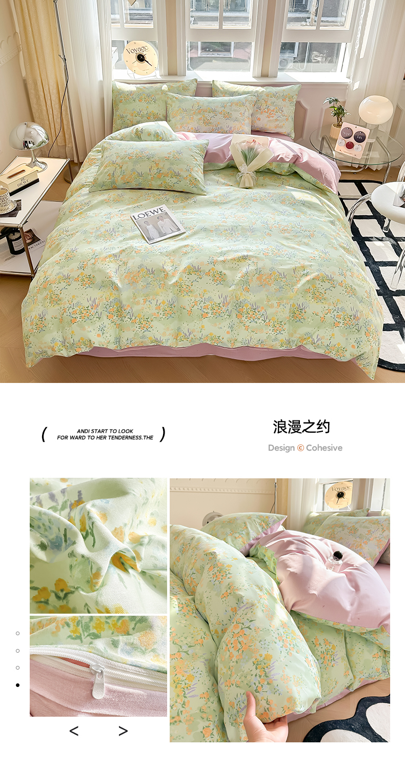 简宜家居 2025新款40支13070全棉斜纹繁花系列四件套 浪漫之约