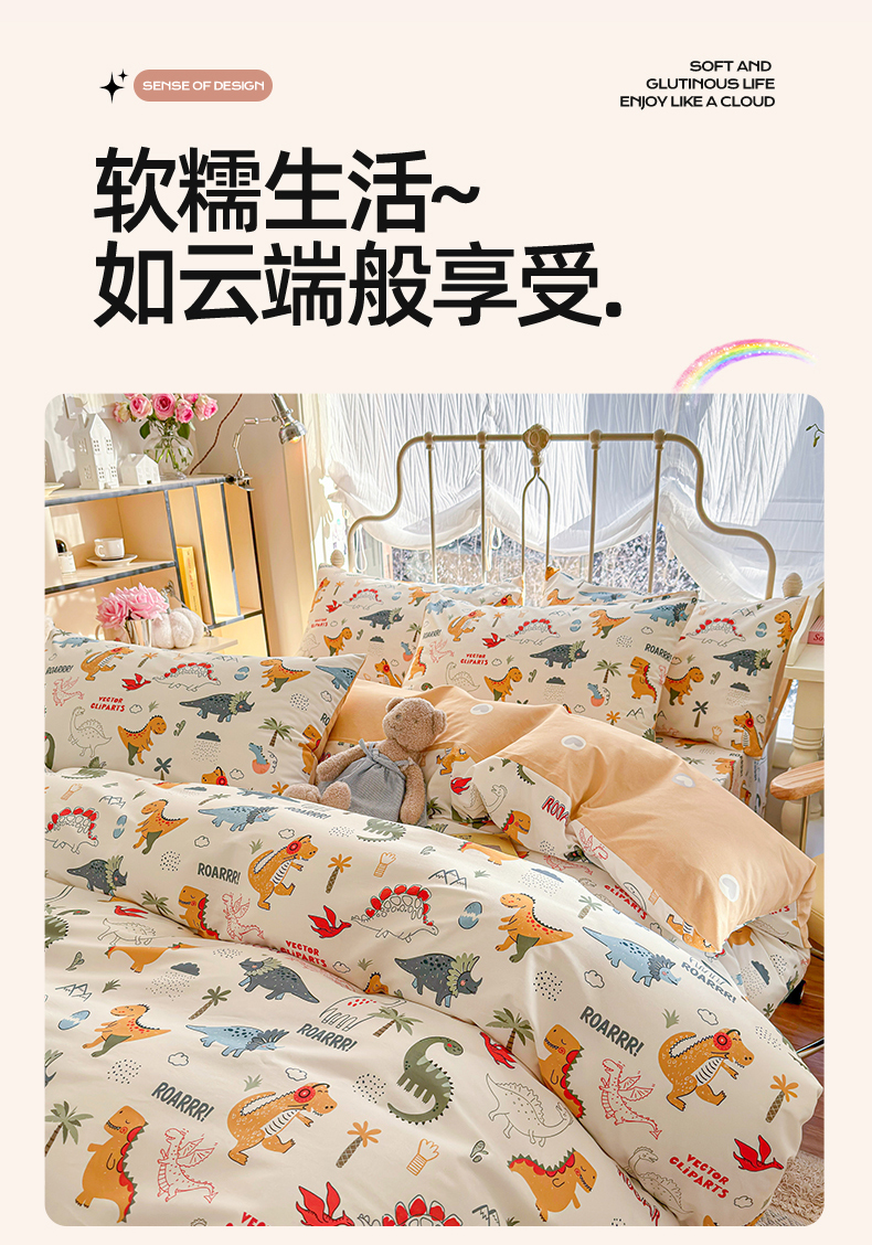 当前位置: 91家纺网 > 商品网购 > 床品套件 > 四件套 > 全棉普通四件套 > 名兮家居 2024新款卡通风系列全棉四件套 恐龙王国