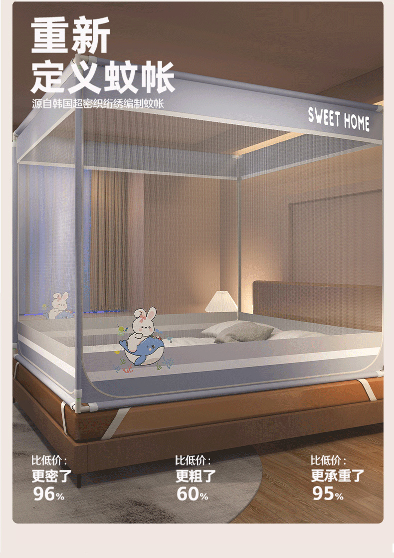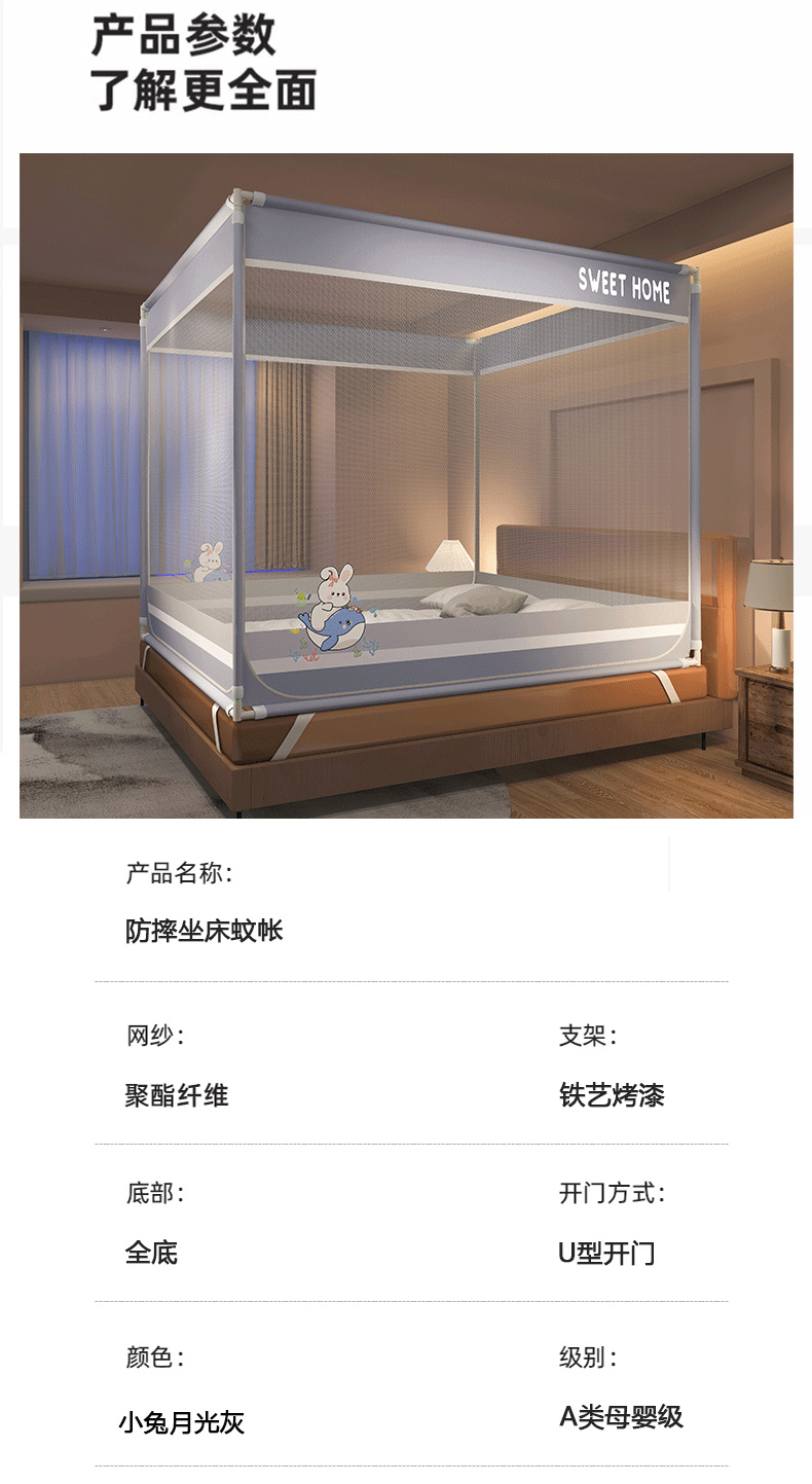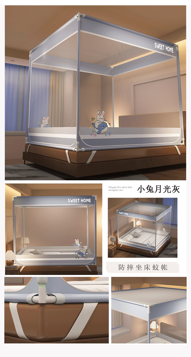 当前位置: 91家纺网 > 商品网购 > 床上用品 > 蚊帐 > 坐床式蚊帐 > 迪凡保罗蚊帐 2025新款2403小兔子外穿杆防摔坐床蚊帐 小兔月光灰