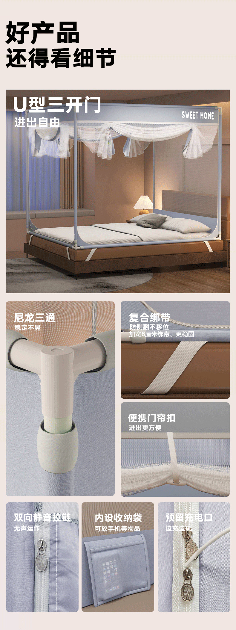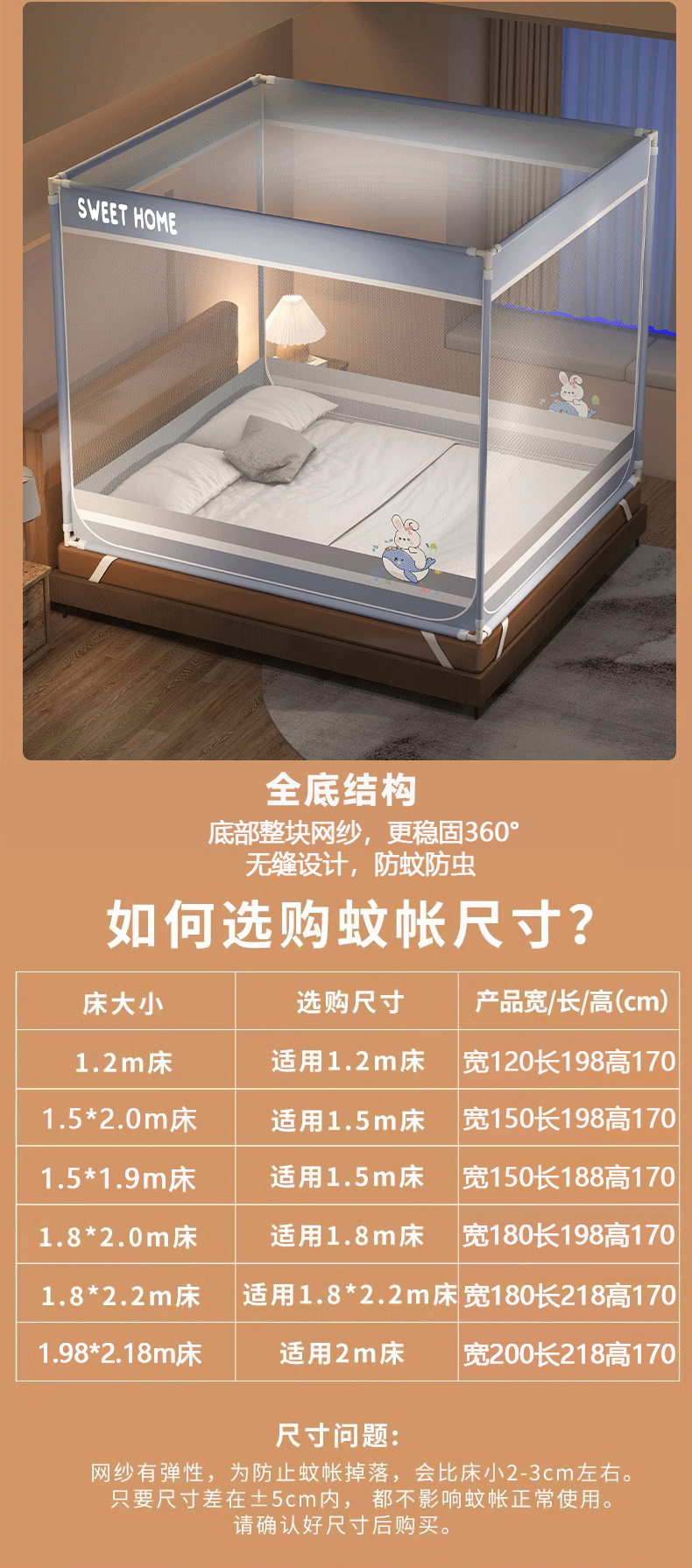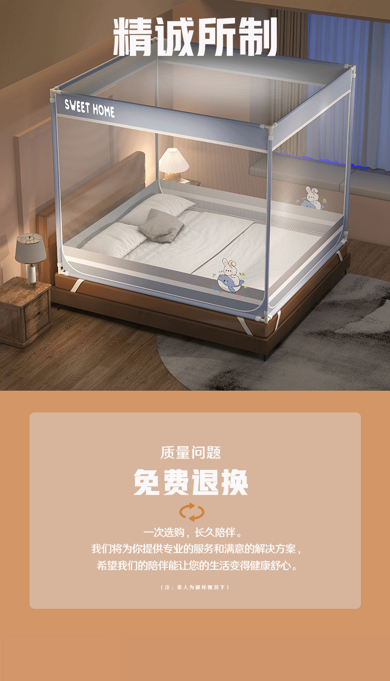 当前位置: 91家纺网 > 商品网购 > 床上用品 > 蚊帐 > 坐床式蚊帐 > 迪凡保罗蚊帐 2025新款2403小兔子外穿杆防摔坐床蚊帐 小兔月光灰