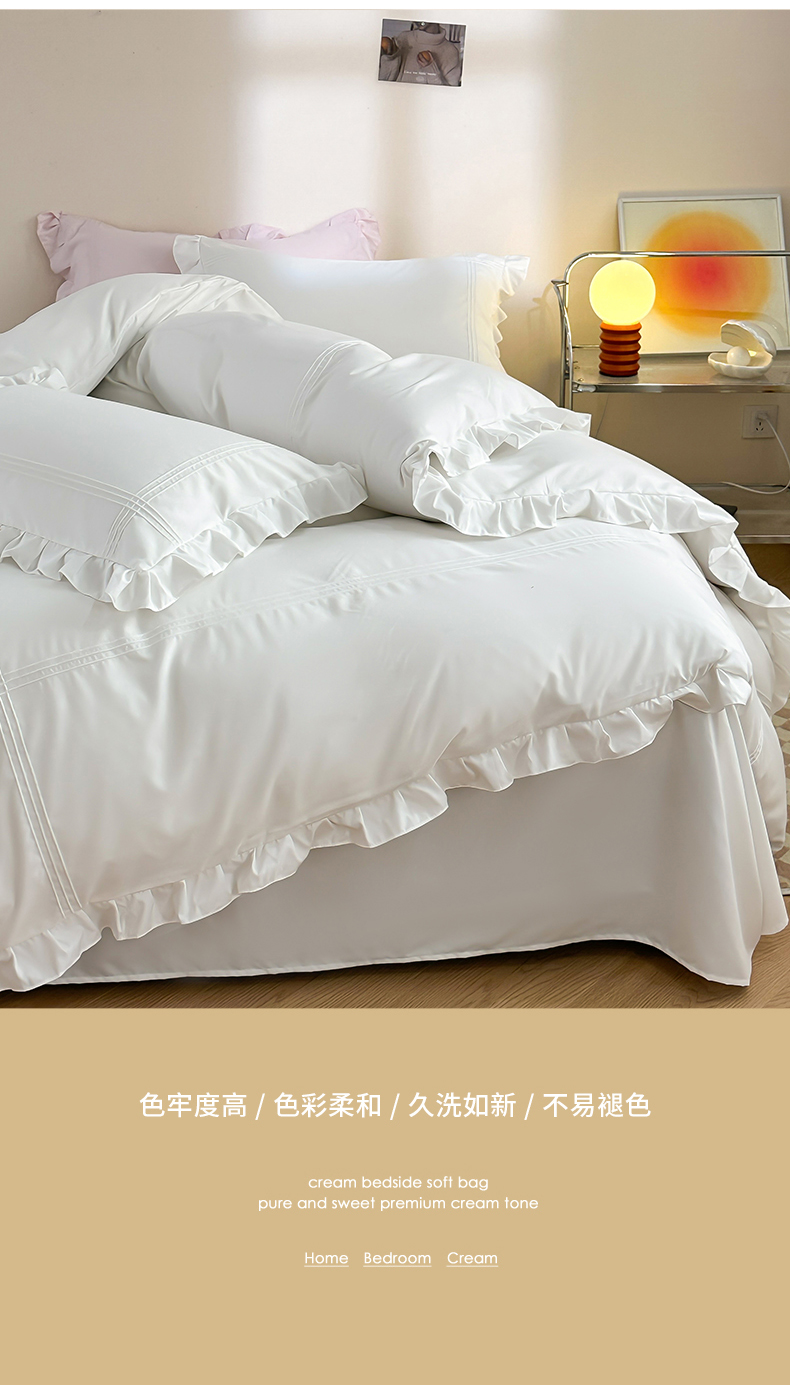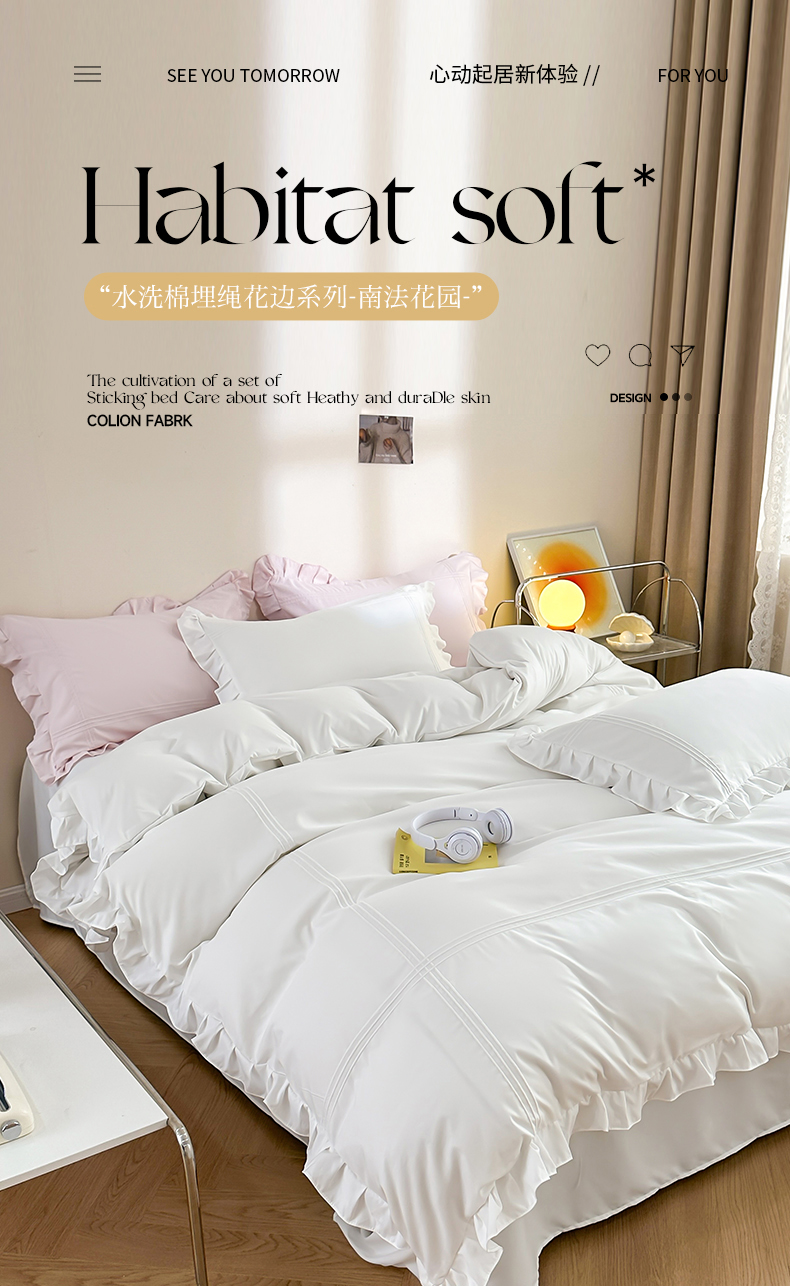 商品名称:绒兔兔 2024新款水洗棉埋绳花边系列-南法花园 奶白