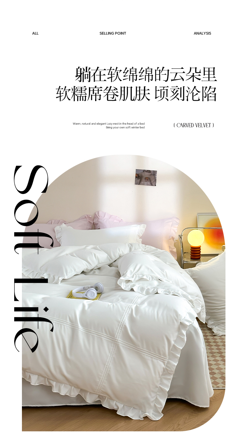 (总)绒兔兔 2021牛奶绒韩版揪花床裙四件套,潮蓝,豆绿,咖啡,魅紫,米白,嫩粉,深海蓝,太空灰,铁锈红,土黄