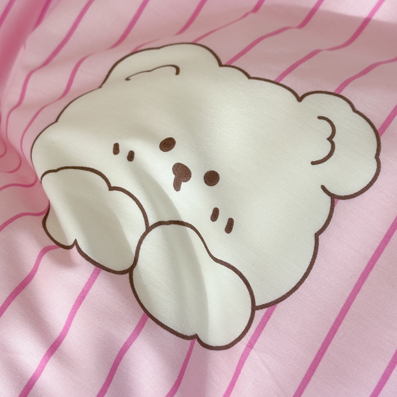 桃喜 2024新款春夏新品全棉混搭时尚休闲印花系列套件-系列1 奶油狗狗粉