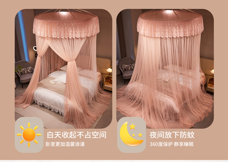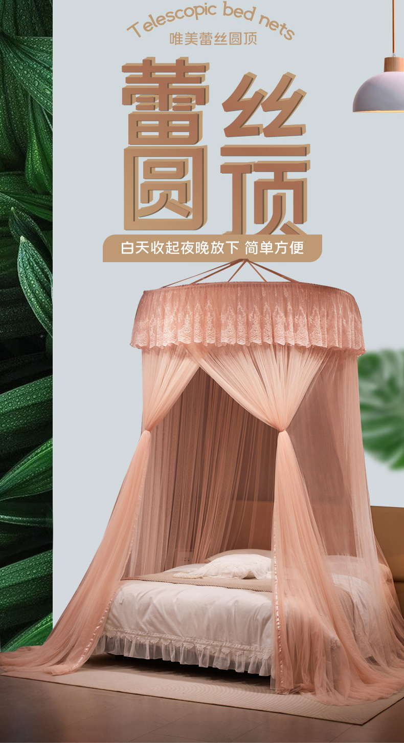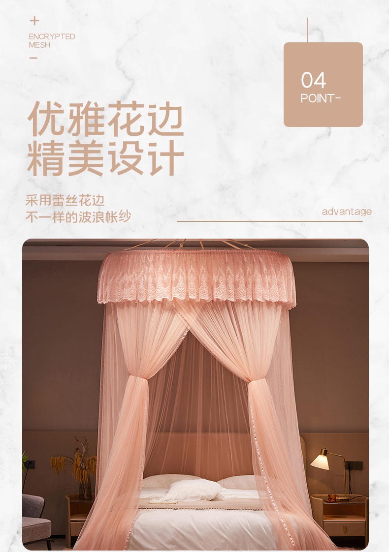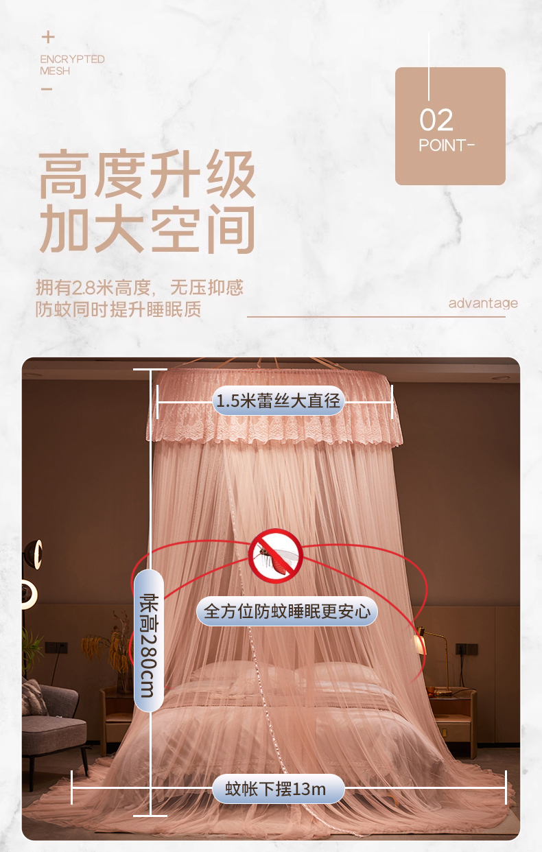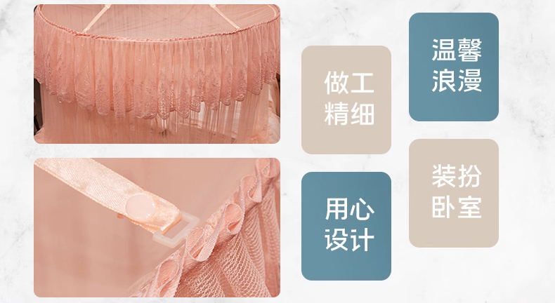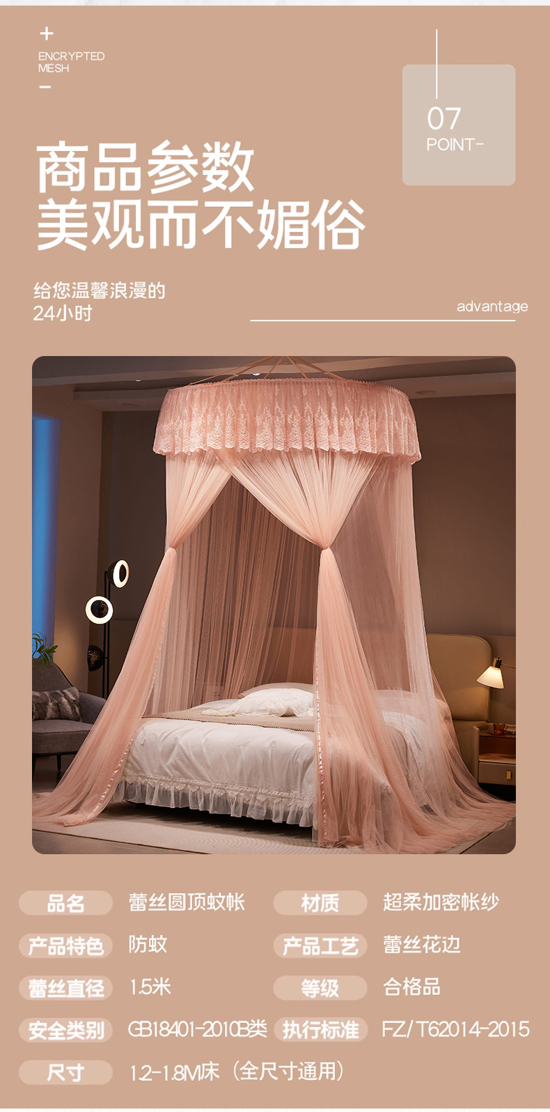 商品名称:雪姿家纺 2024新款唯美蕾丝圆顶蚊帐-颜汐 颜汐-暖玉